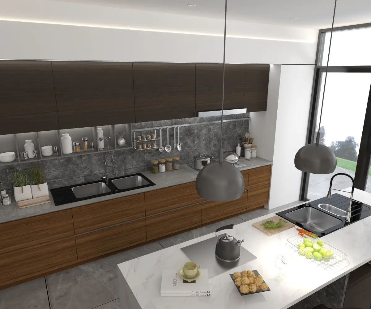 The archive includes: kitchen model Kitchen sink designed in a special waylamp All decors on shelves and on the tabletop