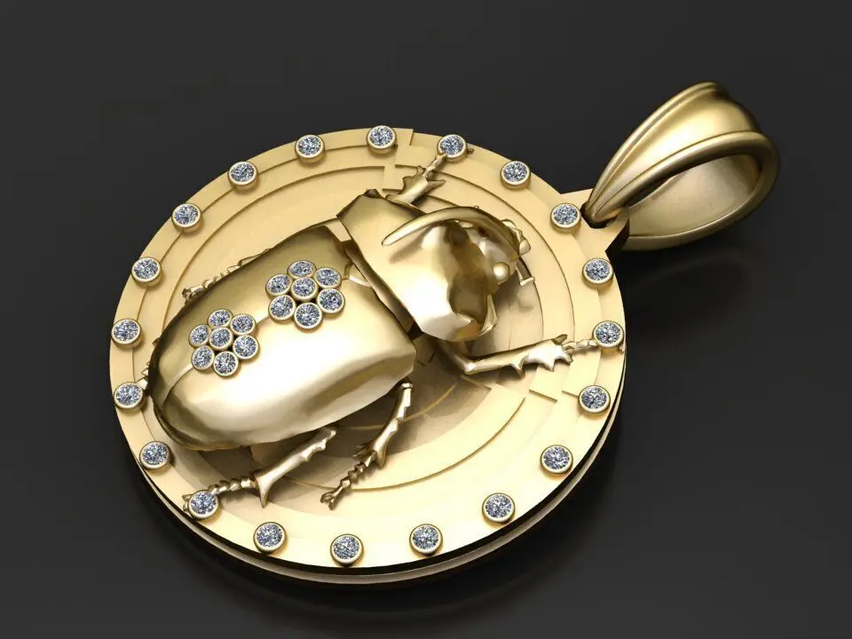 This striking pendant features a highly detailed 3D beetle design at its center, capturing both natural elegance and symbolic depth. Available in radiant gold and sleek silver finishes, the beetle is adorned with carefully set white gemstones arranged in a floral pattern on its back. The circular base is accented with a ring of shimmering stones, adding brilliance and dimension to the piece. The beetle, often a symbol of protection, transformation, and strength, makes this pendant a bold fashion statement and a meaningful accessory for those who embrace unique and powerful symbolism in their jewelry.