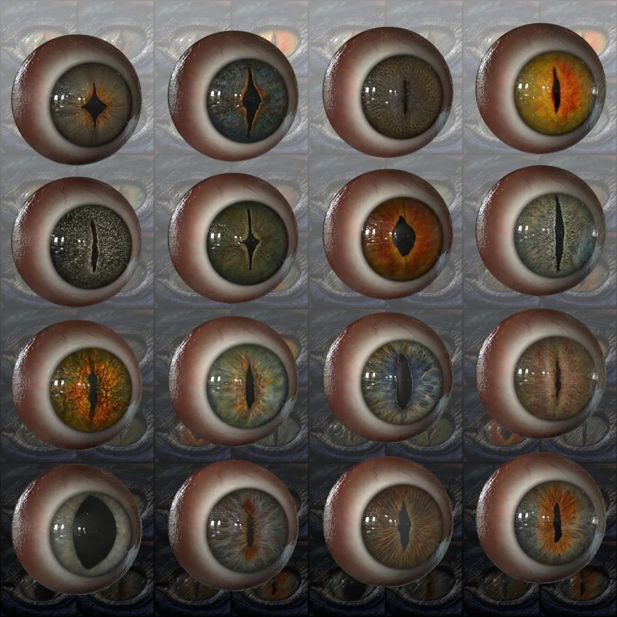 16 x eye iris texture maps in separate folders to make it easy to use in other software.