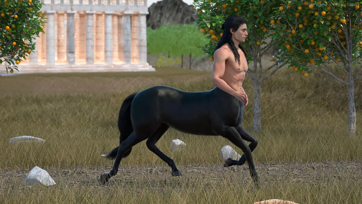 Creature Long Hair Centaur Rigged for Maya is a three-dimensional model of male centaur, a legendary being from ancient mythology that combines the upper body of a human with the lower body of a horse.
