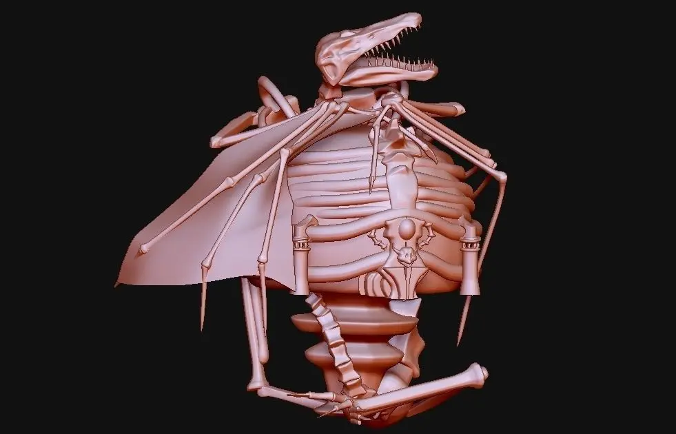 Creature skeleton statue Low-poly 3D model