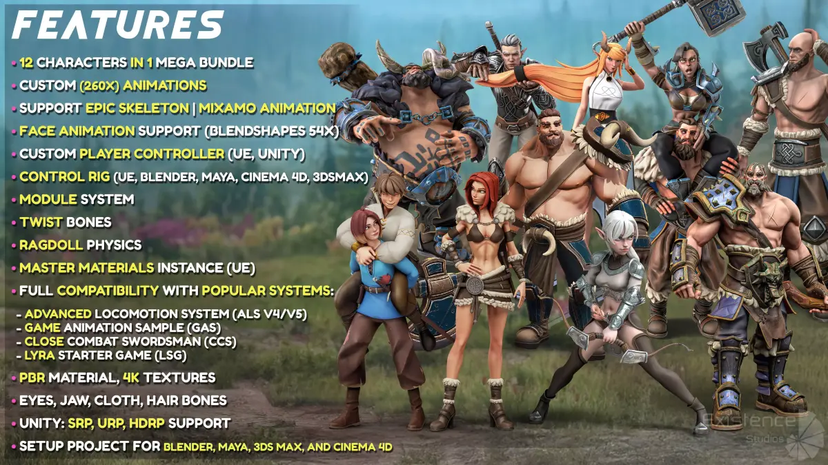 - Control Rig & IK: Fully rigged for Unreal Engine, Cinema 4D, Blender, and Maya.