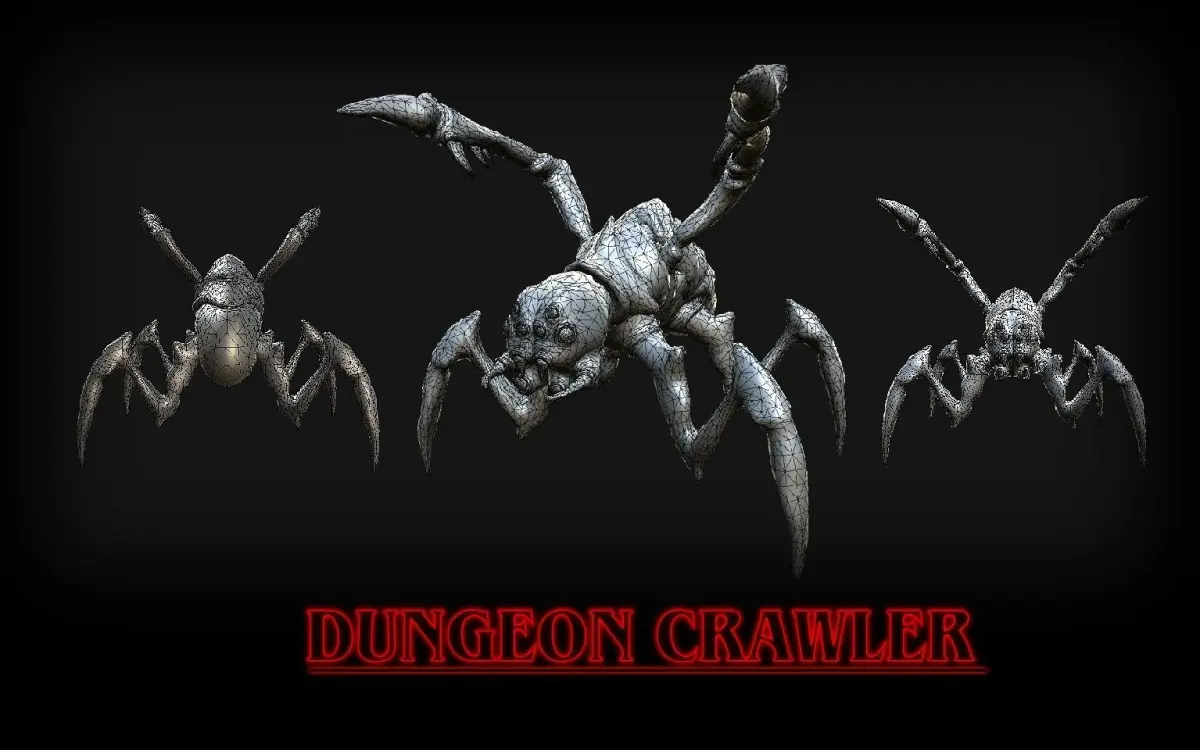 The first creature to be introduced is the Dungeon Crawler. The dungeon crawler is a 4 legged beast, most akin to a spider. The Crawler uses his top pincers to both attack and defend himself.