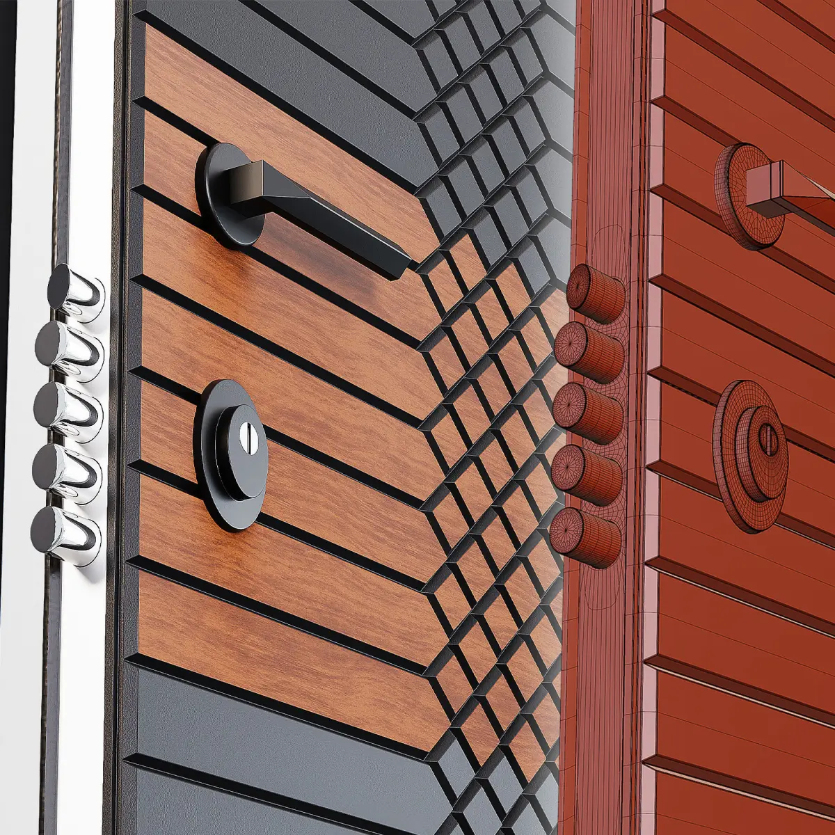 Description:Credo IV - Entrance door.This is a metallic and wooden door that exists in real life. The 3D model uses PBR material and UV Mapped.This will give you a realistic quality in your rendering. 3D Model dimensions correspond to real life dimensions.You can see the real life market price through the link below: