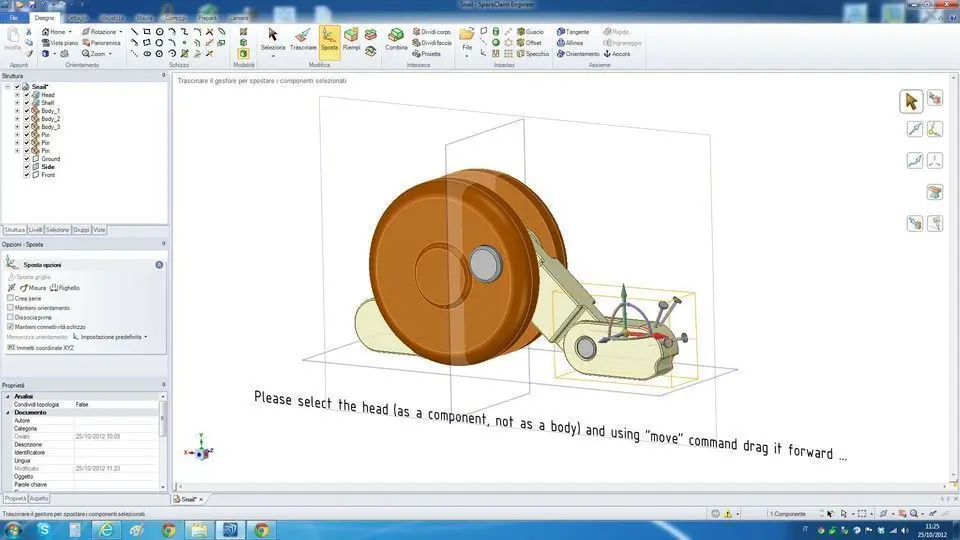 Another quick test with SpaceClaim assembly constraints, expecially "gear" constraint. Please read the note to make the snail creep.