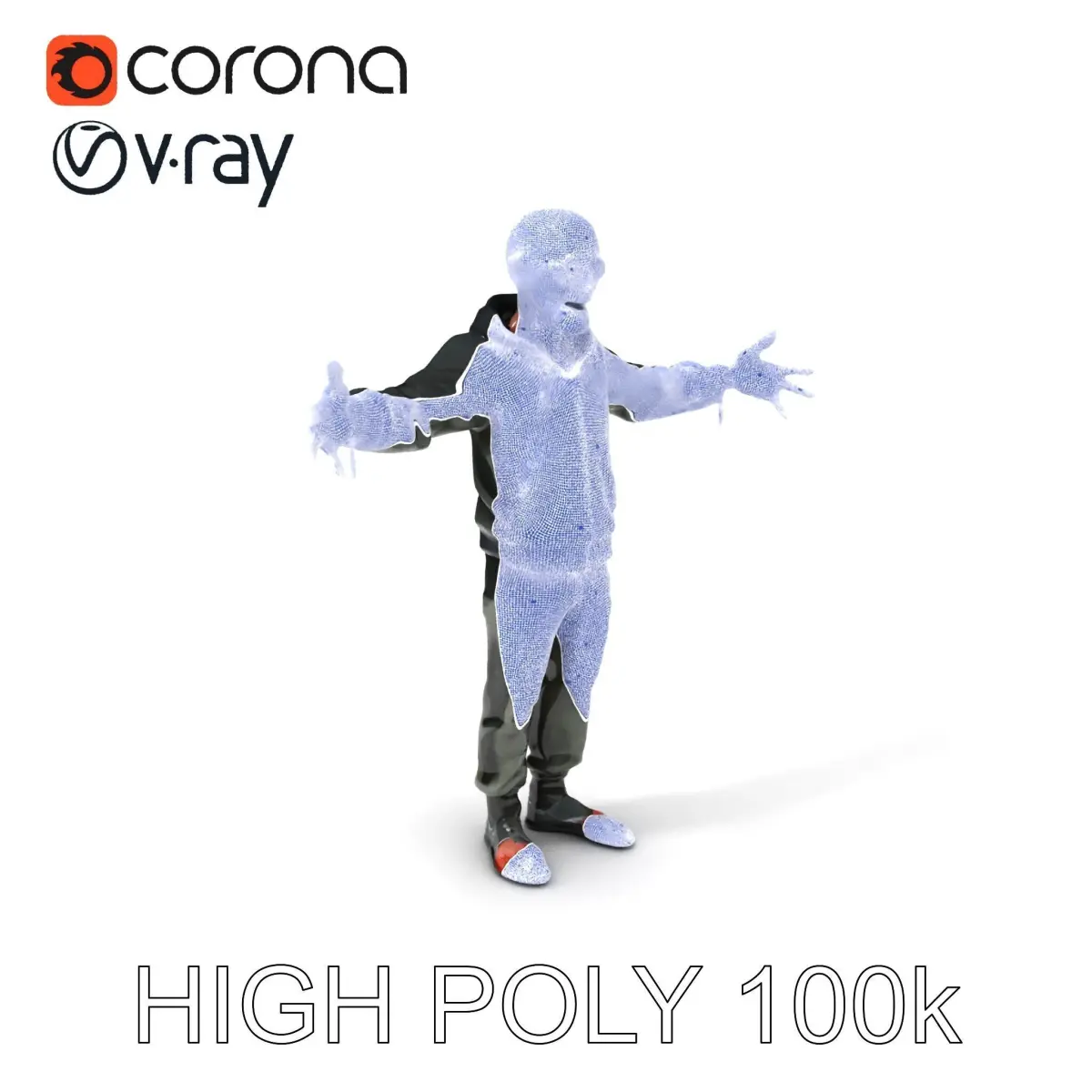 Home Catalog Creepy Zombie Character in Distressed Hoodie and Pants Low-poly 3D model