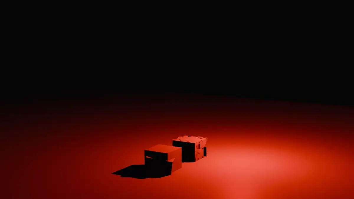Crimson Detonation is a dynamic low-poly 3D model that captures the dramatic moment of an explosive burst of geometric fragments. Designed with an architectural and mathematical aesthetic, this animated scene combines abstract art with engineering precision, creating a visually striking explosion of glowing red shards against a dark silhouette background.