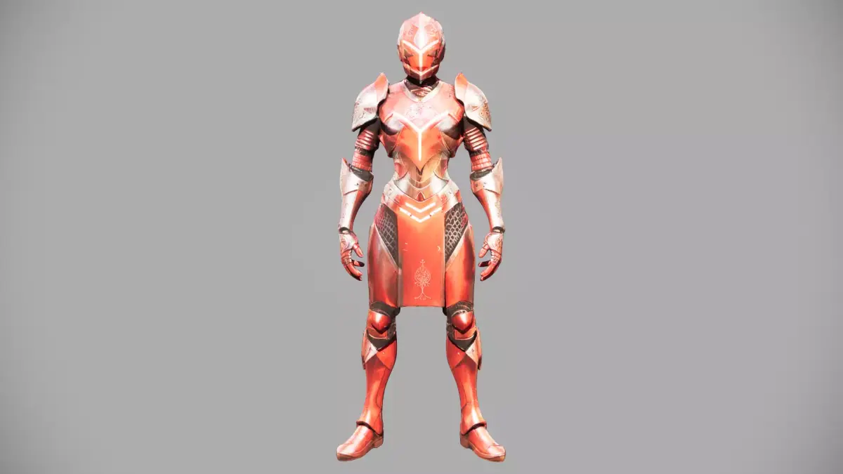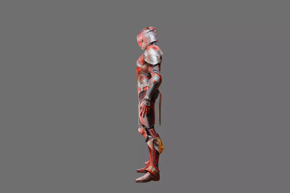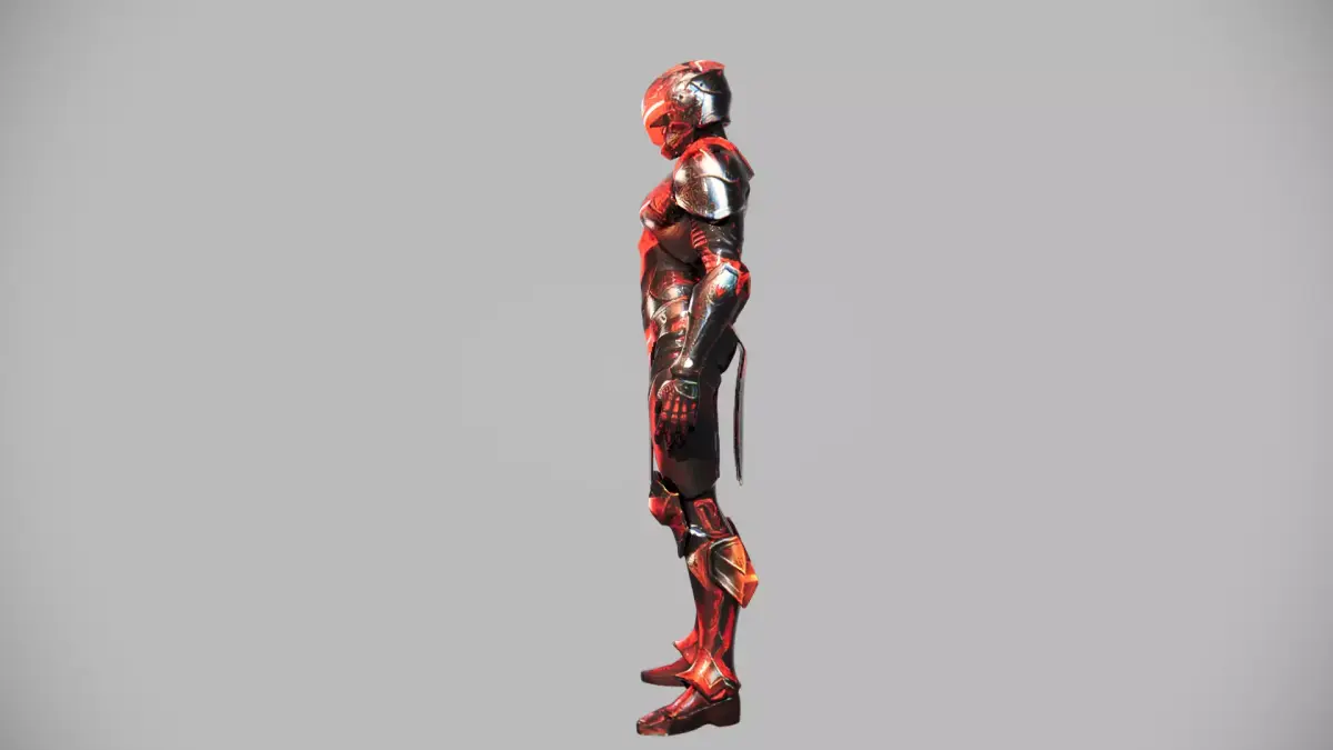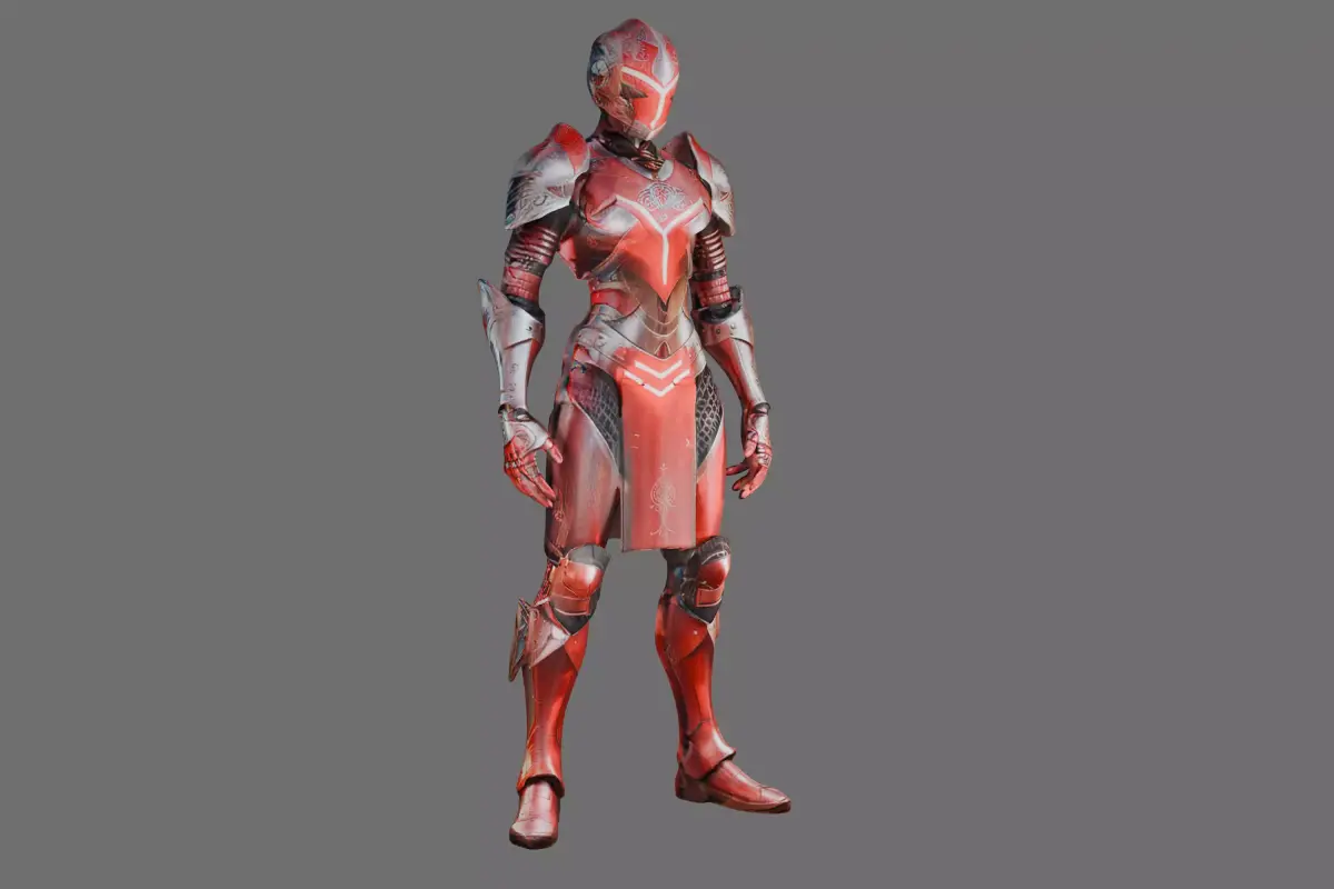 This sleek, red-and-silver armored character model blends futuristic design with ornate detailing—ideal for sci-fi games, film previsualization, or digital art projects. The asset features clean topology (quad-dominant mesh), PBR (Physically Based Rendering) textures (4K albedo, roughness, metallic maps), and a rigged skeleton with basic facial/body controls for animation.