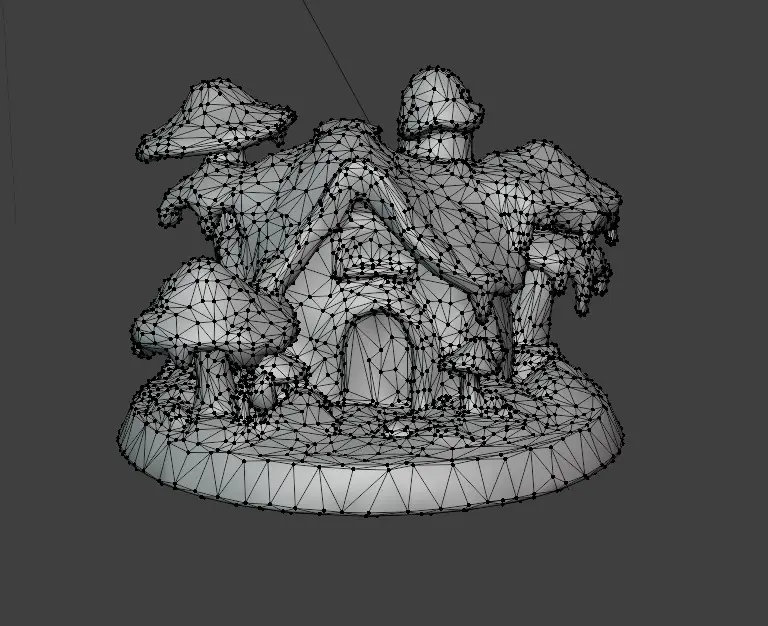 This house is done in blue tones, surrounded by tall fantastic mushrooms. The roof is covered with moss, and a soft light shines from the window.The model has 15,000 polygons, so it is quite suitable for 3D printing.