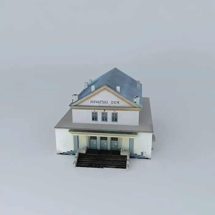 This 3D model was originally created with Sketchup 8 and then converted to all other 3D formats. Native format is .skp 3dsmax scene is 3ds Max 2016 version, rendered with Vray 3.00 Croatian community centre Karlovac, built in 1926, architect Aleksandar Freudenreich