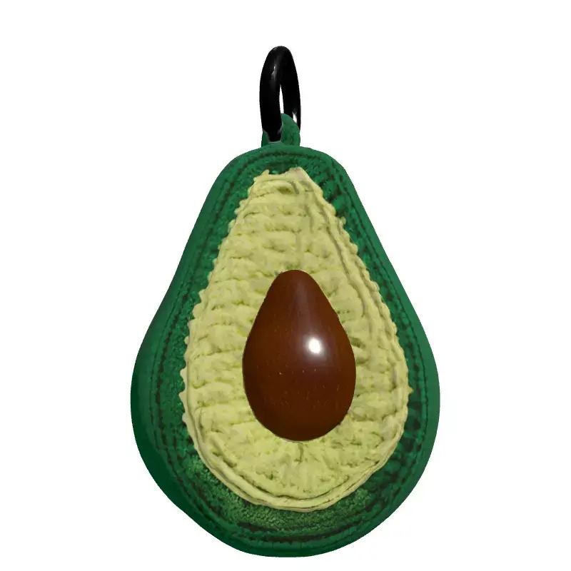 This highly detailed 3D model presents a charming crocheted avocado, complete with a realistic metallic keyring. Meticulously crafted, the model showcases intricate crochet patterns for both the dark green outer skin and the lighter green inner flesh, offering a soft, handcrafted aesthetic. A smooth, dark brown pit sits at the center, providing a natural contrast. This versatile asset is ideal for a wide range of digital projects, from enriching casual game environments as a delightful prop or collectible to adding a cozy, personalized touch in architectural visualization scenes. It is also perfect for use in augmented reality (AR) applications, virtual reality (VR) experiences, or as a unique element in digital art compositions. The model boasts clean topology and is fully UV unwrapped, ensuring seamless texture application and easy integration into any 3D pipeline. PBR textures are included, enhancing realism with accurate material properties for stunning renders. Optimized for both real-time applications and high-quality static renderings, this model is provided in multiple industry-standard formats, including GLB, OBJ, STL, ABC, DAE, FBX, USD, and PLY, maximizing compatibility and workflow flexibility. Whether you need a whimsical accessory or a detailed craft item, this crocheted avocado model is ready to bring warmth and character to your next project.
