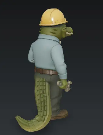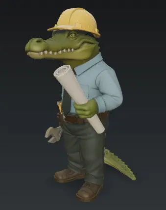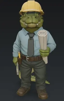 Description:This is a high-quality, stylized 3D character of an anthropomorphic crocodile dressed as a construction engineer. The model features a detailed sculpt with clean, well-defined forms suitable for concept art, animation, cinematic use, or further retopology for game integration.