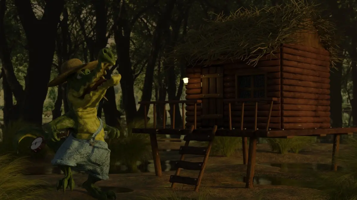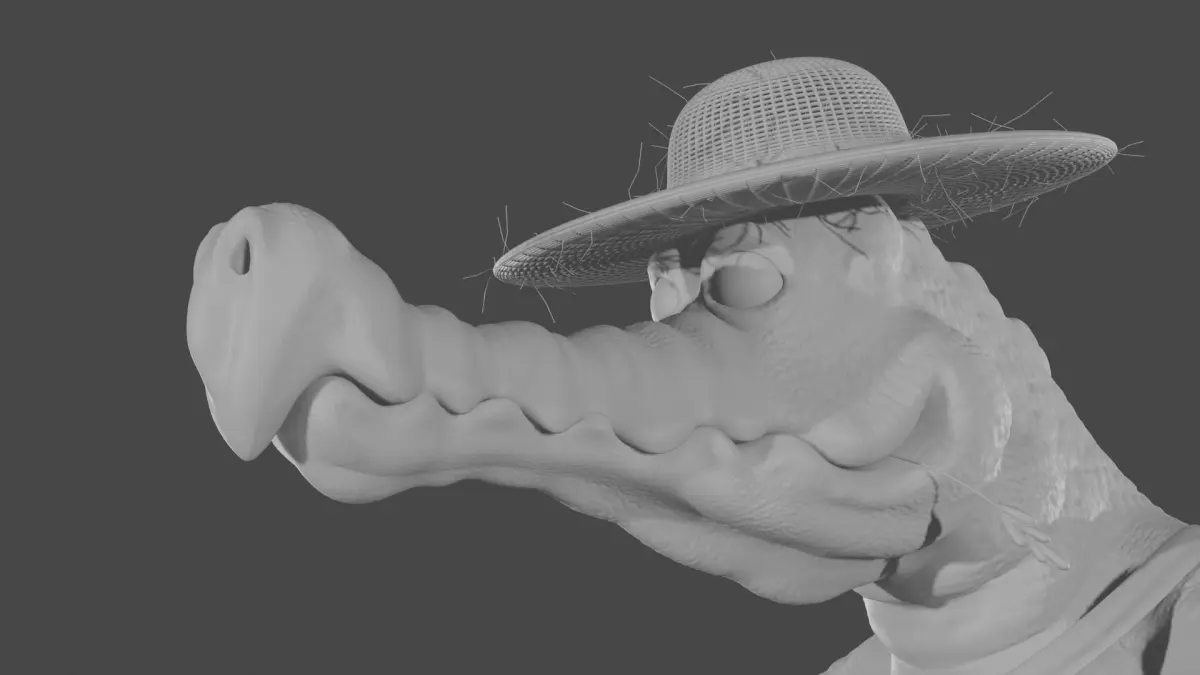 - diffuse, normal map and roughness textures 2048x2048 for the croco and the banjo, while the eyes, the hat and other textures are 1024x1024, all baked in Blender 3.0.0 and included in archived file .zip;