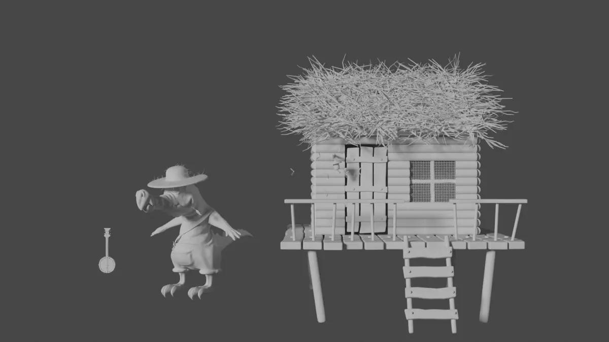 - different meshes for the croco character and for the accessories, such as straw hat and banjo;