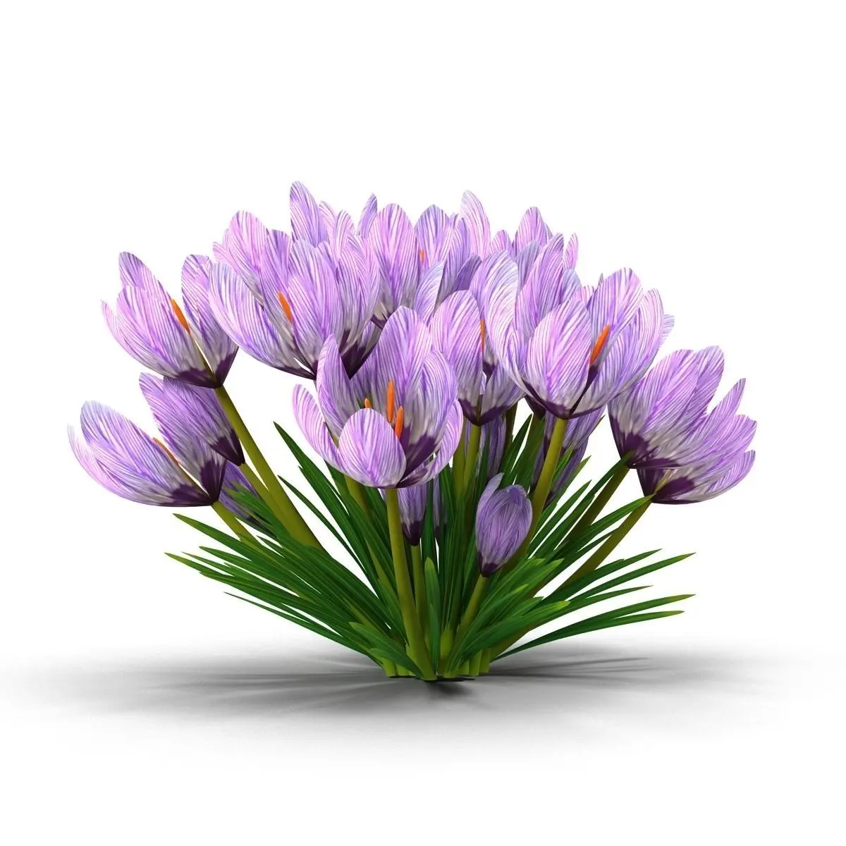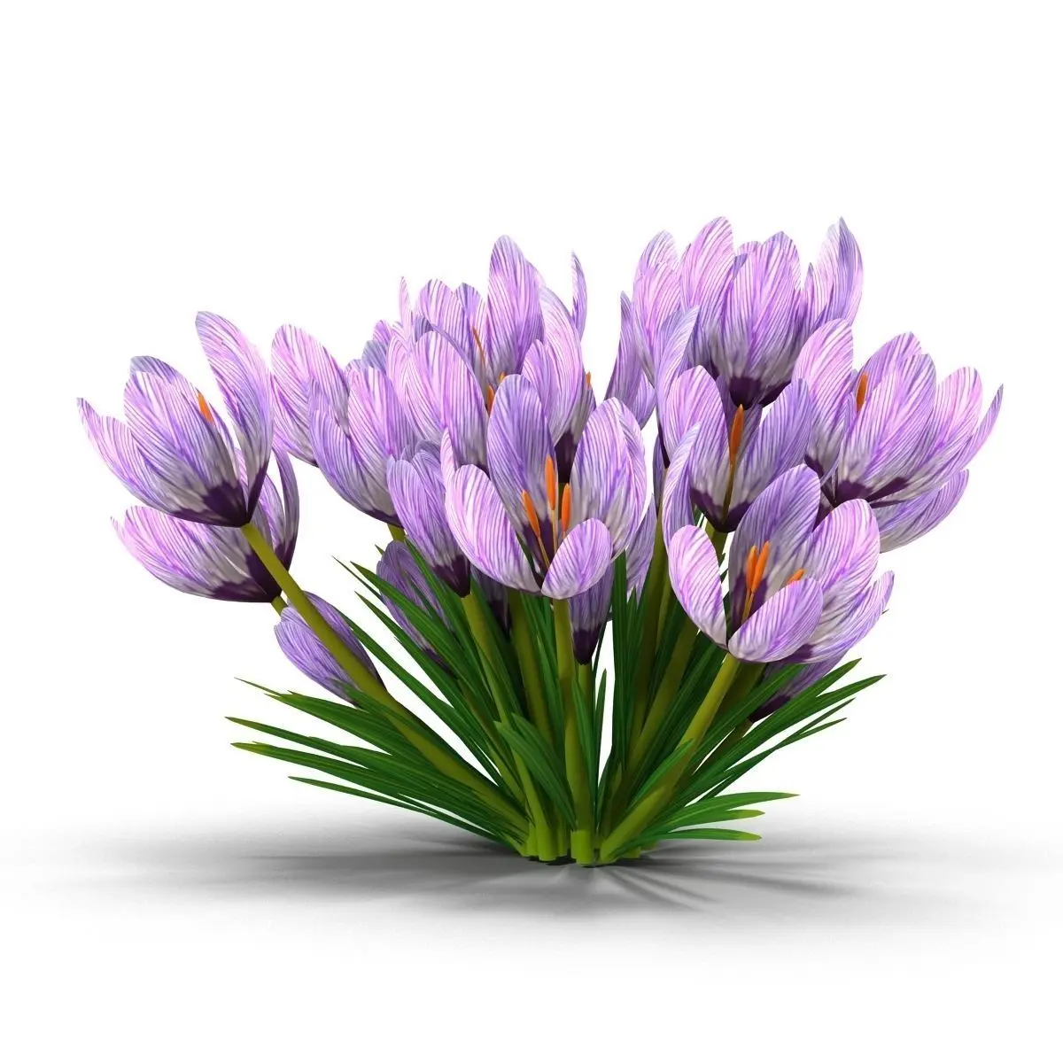 Photorealistic highly detailed 3D model of Crocus. All textures included. Final images rendered with vray.The scene also included a standard material (Scaneline).