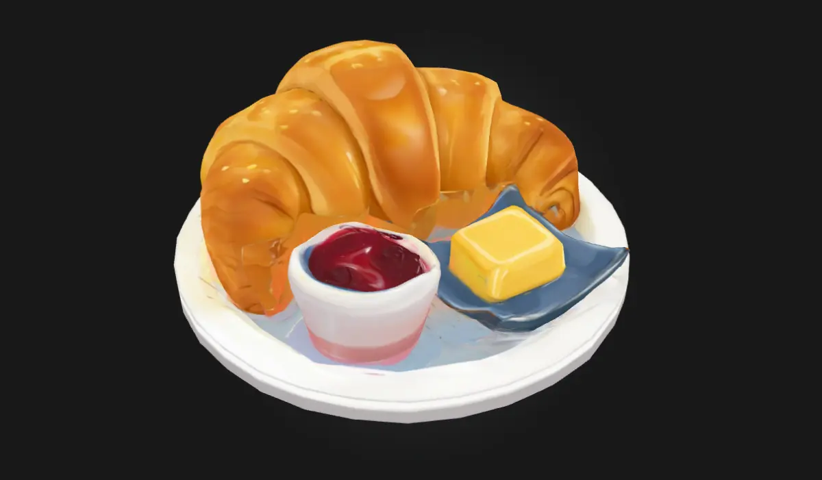 Croissant Delight is a detailed 3D model capturing the flaky, golden perfection of a freshly baked croissant. Ideal for café scenes, food advertisements, bakery menus, or breakfast-themed visualizations, it brings warmth and authenticity to any render.
