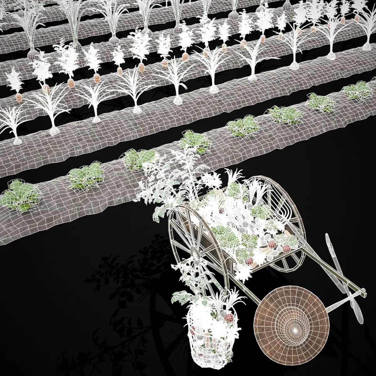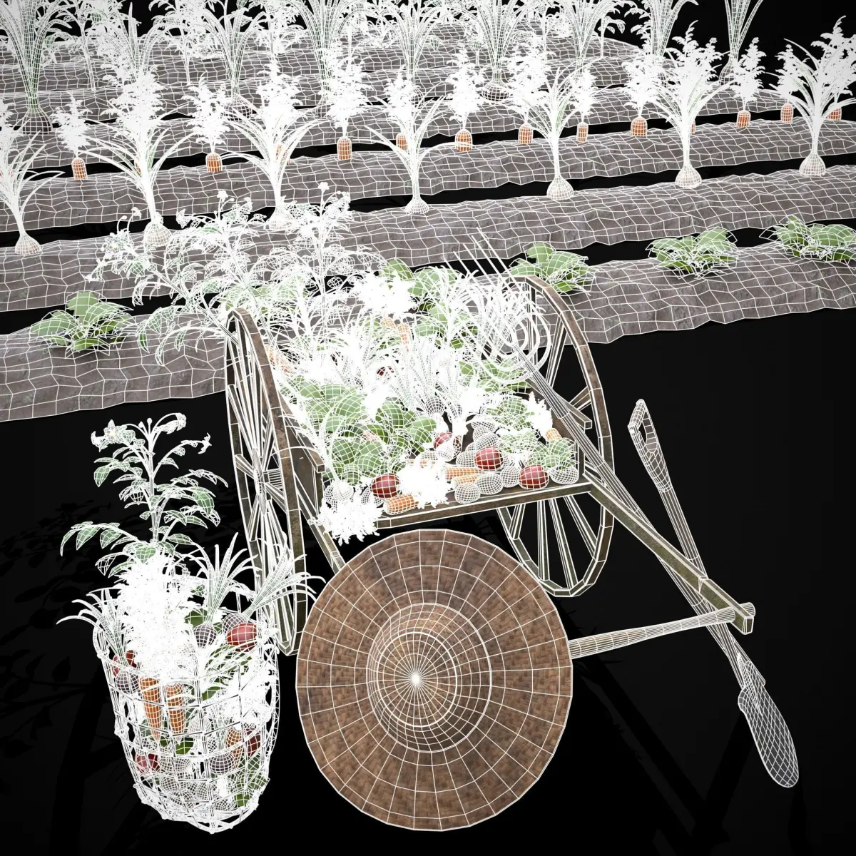 Crops and Wheelbarrow - 3D Model Files Include FBX and OBJ. Plants include Potatoes, Garlic, Red Onions, Peas bush and Peas Climb, Carrots and Lettuce. Includes PBR Texture in 4096 x 4096. - Maps include : Basecolor, Normal, Roughness, Height and Metallic. Each Vegetable has it's own material, while the ground dirt, has one material. Thirteen Materials in Total. All Preview renders were done Marmoset Toolbag 4. Scaled to real world scale. Customer Service Guaranteed. From the Creators at Get Dead Entertainment. Please like and Rate! Follow us on FaceBook and Instagram to keep updated on all our newest models. Model can be used for any purpose except resale or redistribution of the asset if not used in a game, commercial or media project. See each Model Individually to view it's Marmoset Viewer and specific Information.