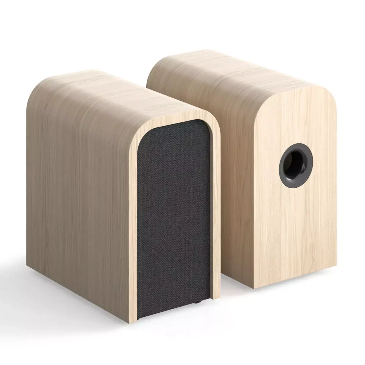 A Crosley GIG vinyl record player with speakers and records. Mid-century style.