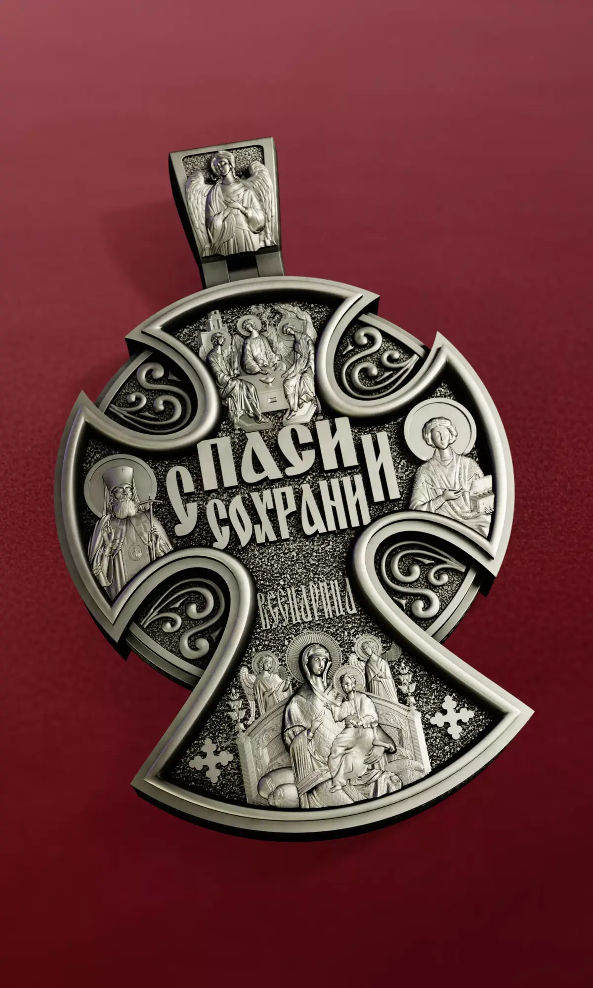 The design combines precise sculptural anatomy and ornate Eastern Christian iconography. Every detail — from the folds of garments to the background texture — has been carefully sculpted for maximum fidelity in metalwork or resin casting.