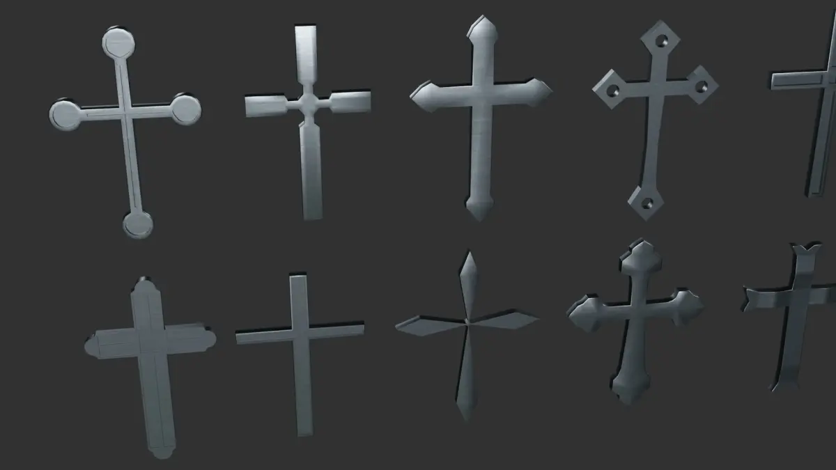 Cross Christianity Symbols Shiny Iron Low-poly 3D Model