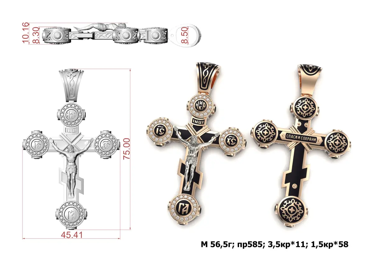 m - 56,5 g 14K; Round 3,5 mm - 11 pcs; Round 1,5 mm - 58 pcs;