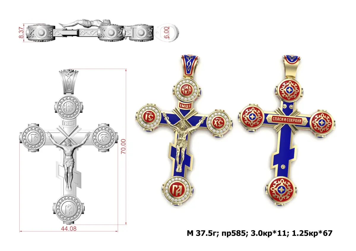 m - 37,5 g 14K; Round 3 mm - 11 pcs; Round 1,25 mm - 67 pcs;