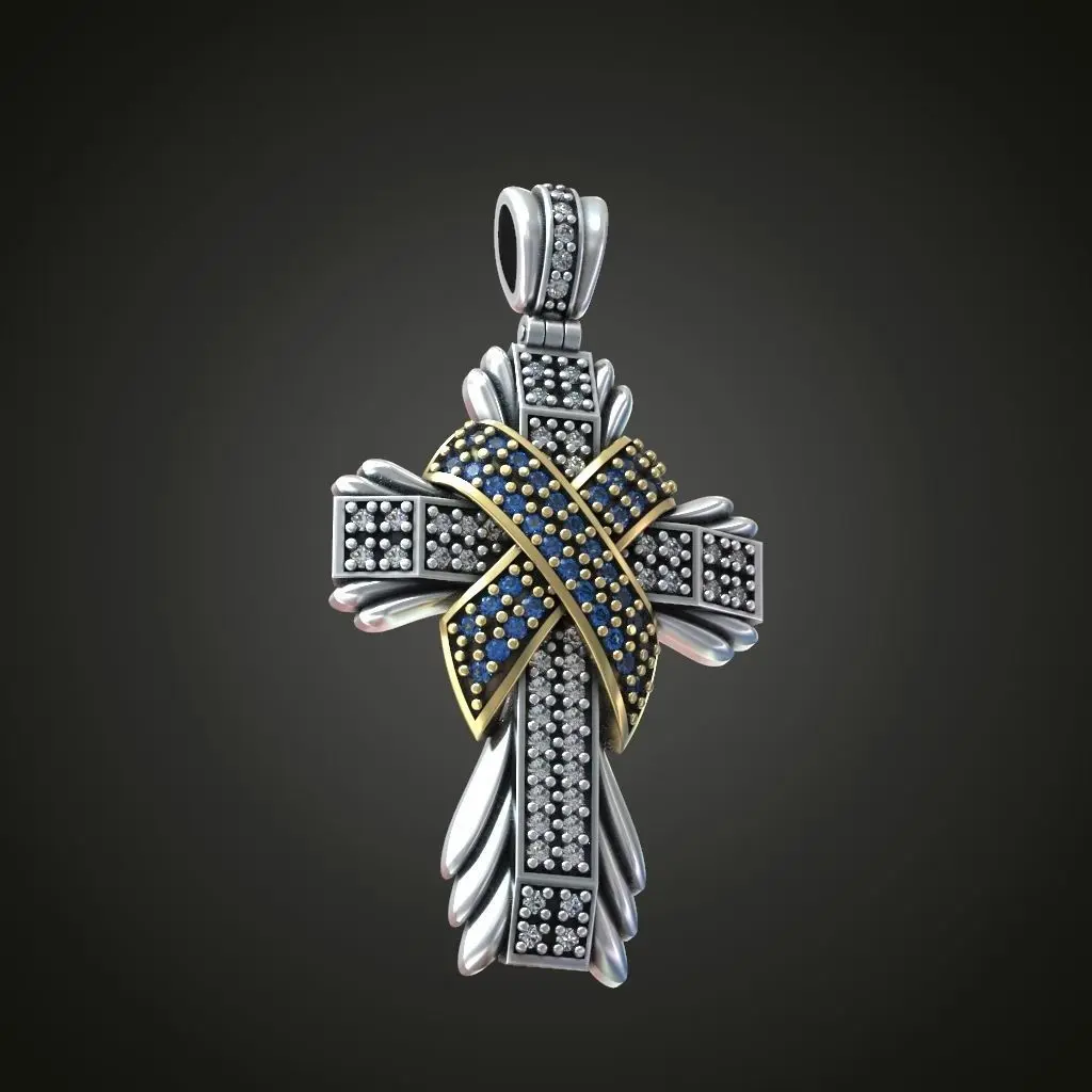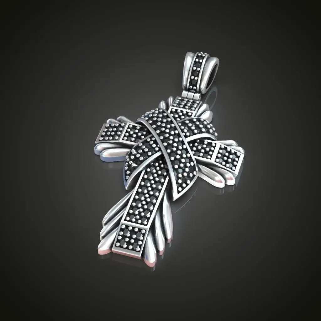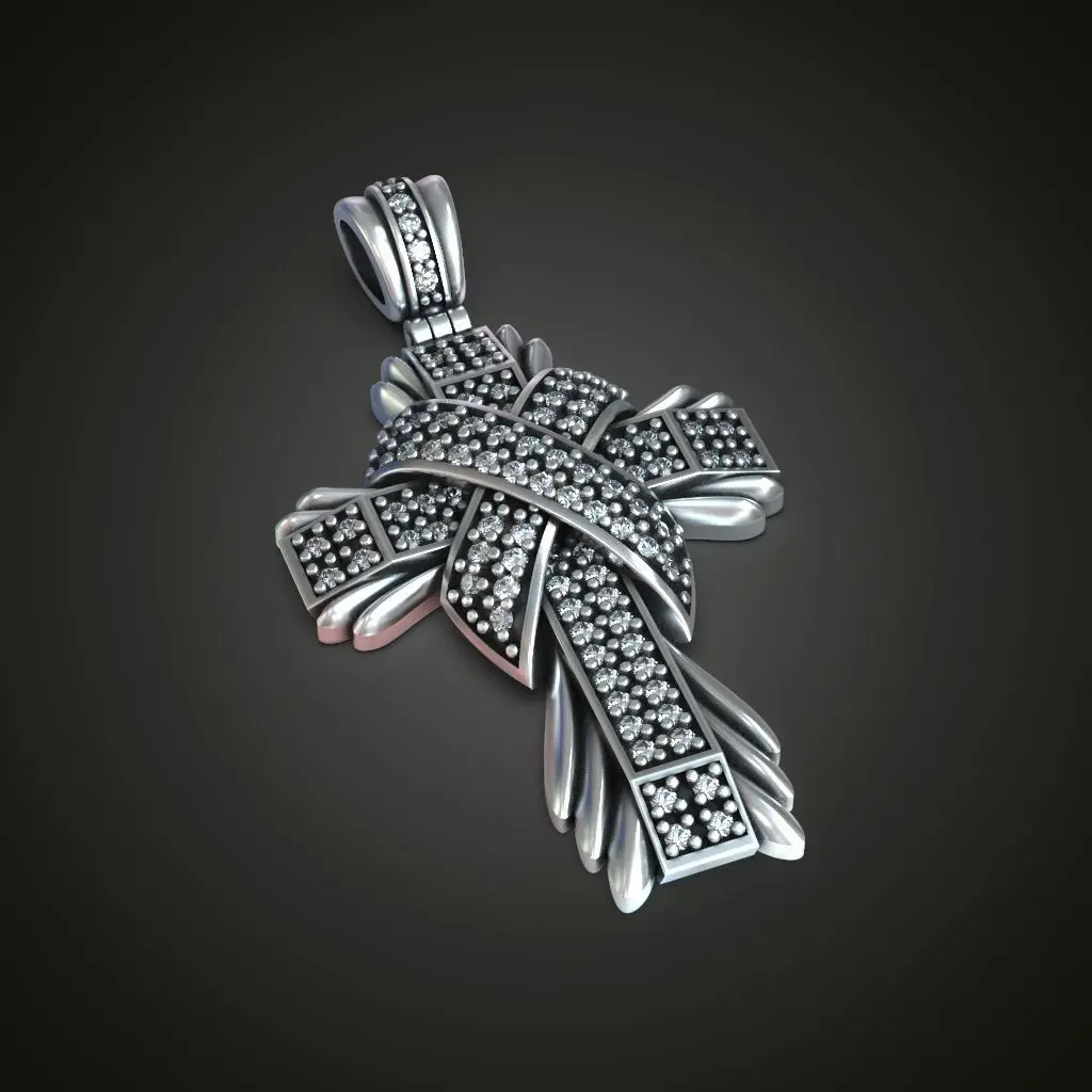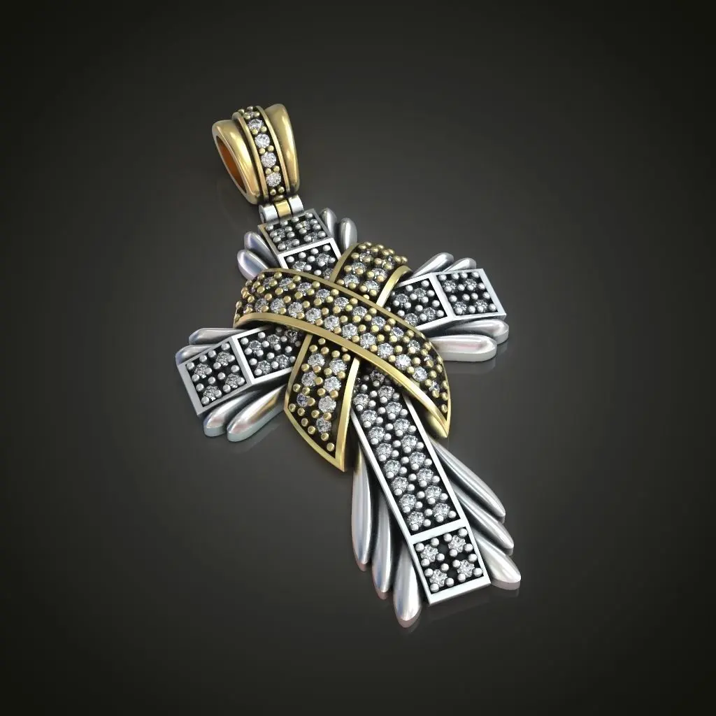 Beautiful luxury looking cross with a pad and rays. Many roundcut gems on the cross the pad and the bail. Files are raedy to print. Download this high quality jewelry 3d model for 3d printing.