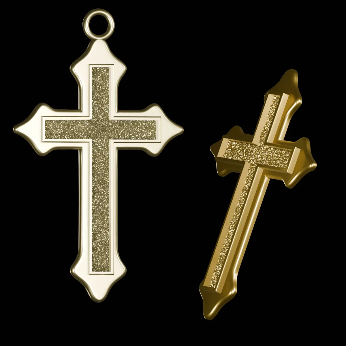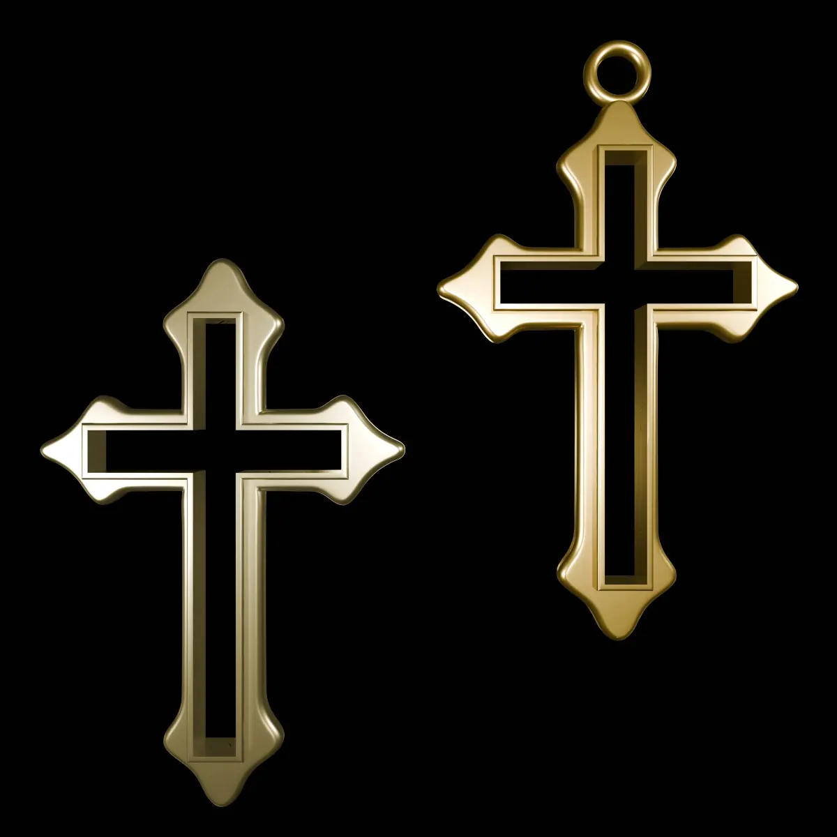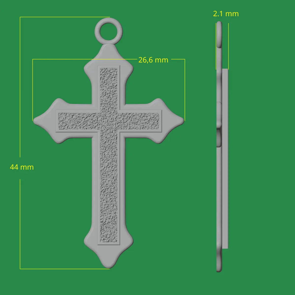 Two cross models.Printable light modelThe package includes both models with and without welded ring with two thicknesses: 2.1mm and 3.1mmNote: The 3dm file only includes meshes, it does not contain nurvs curves.The dimensions are:Without hoop: 26.6mm x 40mm x ** 2.1mm or 3.1mm**With hoop: 26.6mm x 44mm x ** 2.1mm or 3.1mm**The compressed zip file includes all 8 in STL, OBJ and 3dm formatNote: The 3dm file only includes meshes, it does not contain nurvs curves.