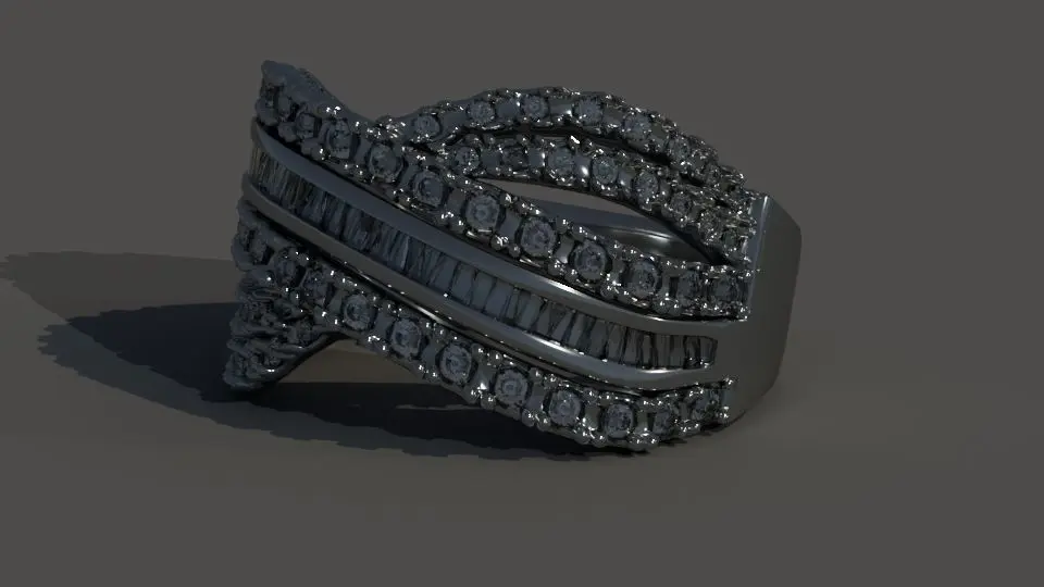 Jewelery, silver base and diamond incrustation. Created for photoreal offline render. 55 446 tris. No UVs. Simple but beautiful decision for varios tasks such as stuff for PBR scene for your breathtaking video / adw. / animation!