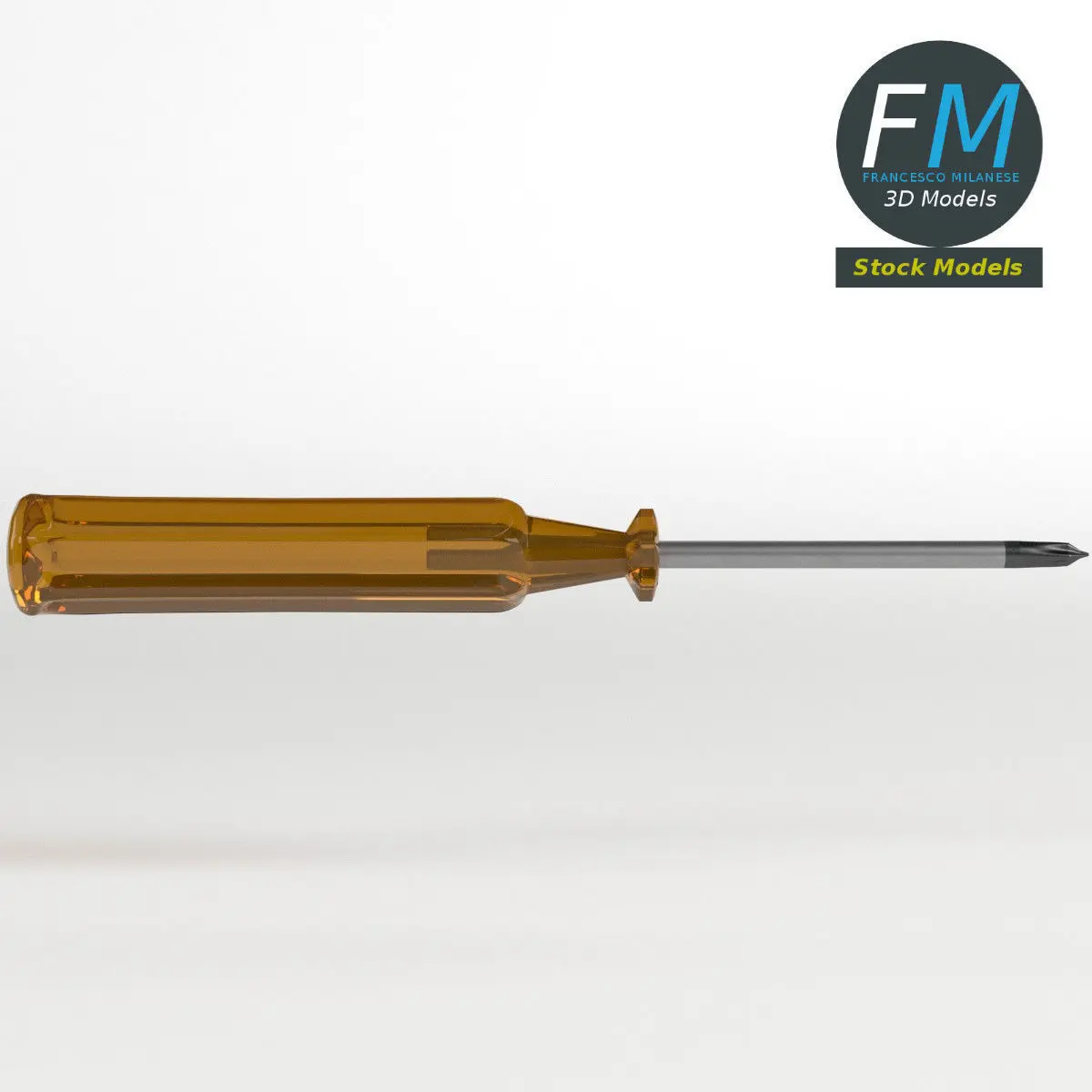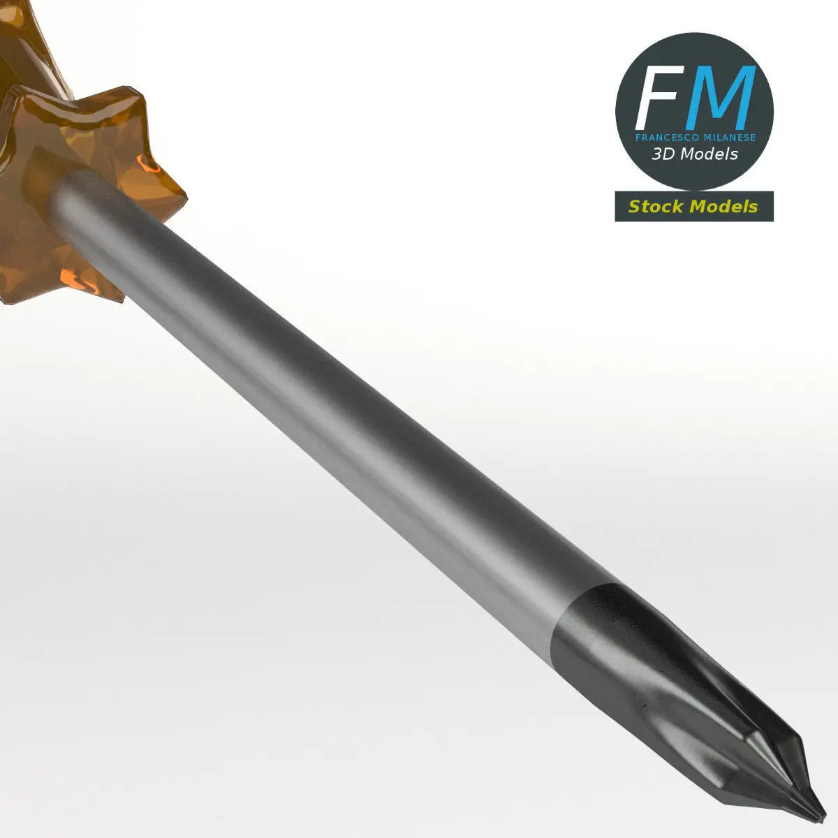 A cross-section screwdriver 3D Model; 2 objects (handle, screwdriver), each one with its own non overlapping UV Layout map, Material and PBR Textures set. Production-ready 3D Model, with PBR materials, textures, and non overlapping UV Layout map provided in the package.