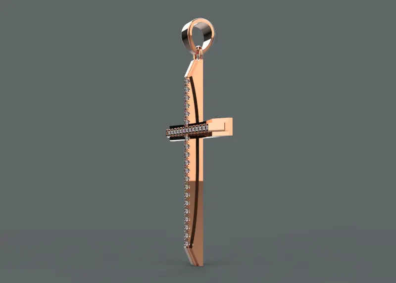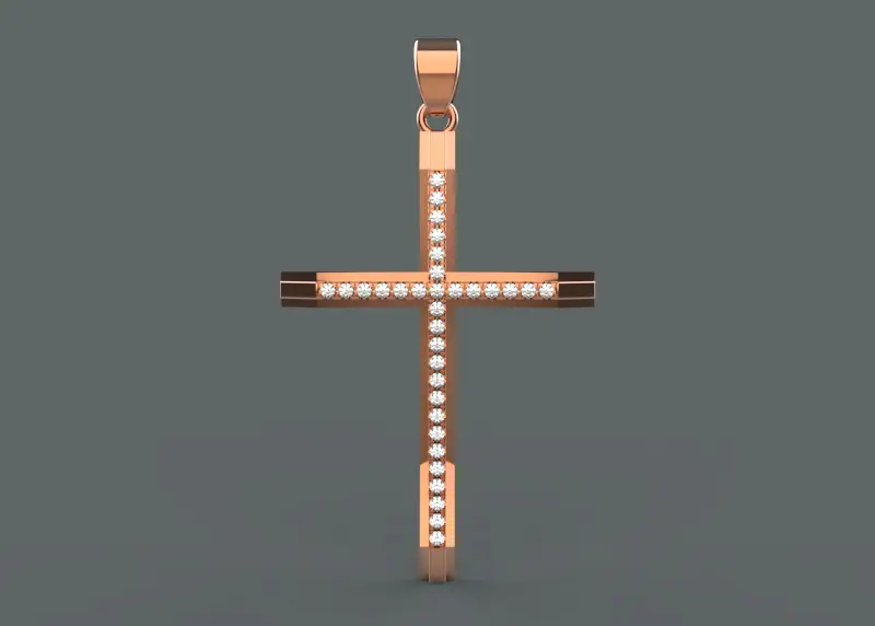 - The 3D model includes realistic textures and materials to accurately represent gold, silver, platinum, or any other precious metal used in the cross. The diamonds are rendered with high clarity, showing the cut, color, and brilliance.