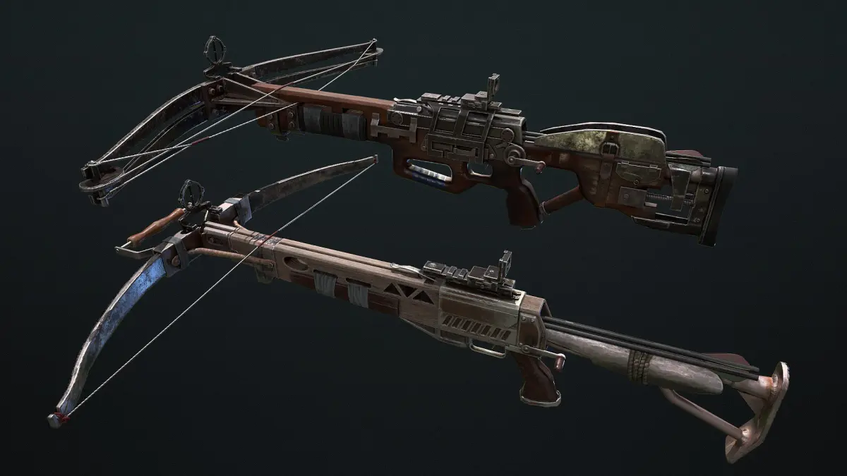 Crossbow - 3d model ready for Virtual Reality (VR), Augmented Reality (AR), games and other real-time apps. Textures made for PBR shader system. Includes several modifications.