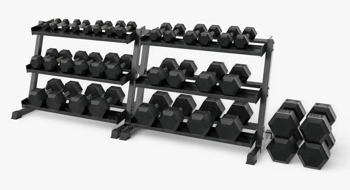 Production-ready 3D models of crossfit gym equipment: dumbbell rack with hexagonal dumbbells, kettlebells (16 kg / 35 lb, 24 kg / 53 lb, 32 kg / 70 lb), plyo box, parallettes, dumbbell pair, ab roller. All models are Checkmate StemCell certified, quad-based, UV-unwrapped, 4K PBR textures, real-world scale. Native format: 3ds Max + V-Ray.