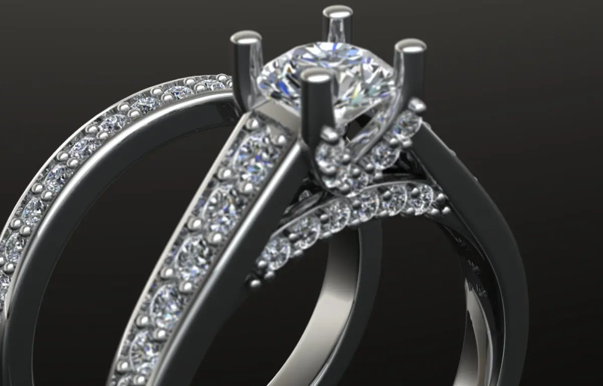 This expertly designed 3D model showcases a modern crossover claw solitaire diamond ring with a side band, crafted for high-end jewelry projects. Ideal for 3D printing, rendering, and manufacturing, the design is detailed, accurate, and versatile.