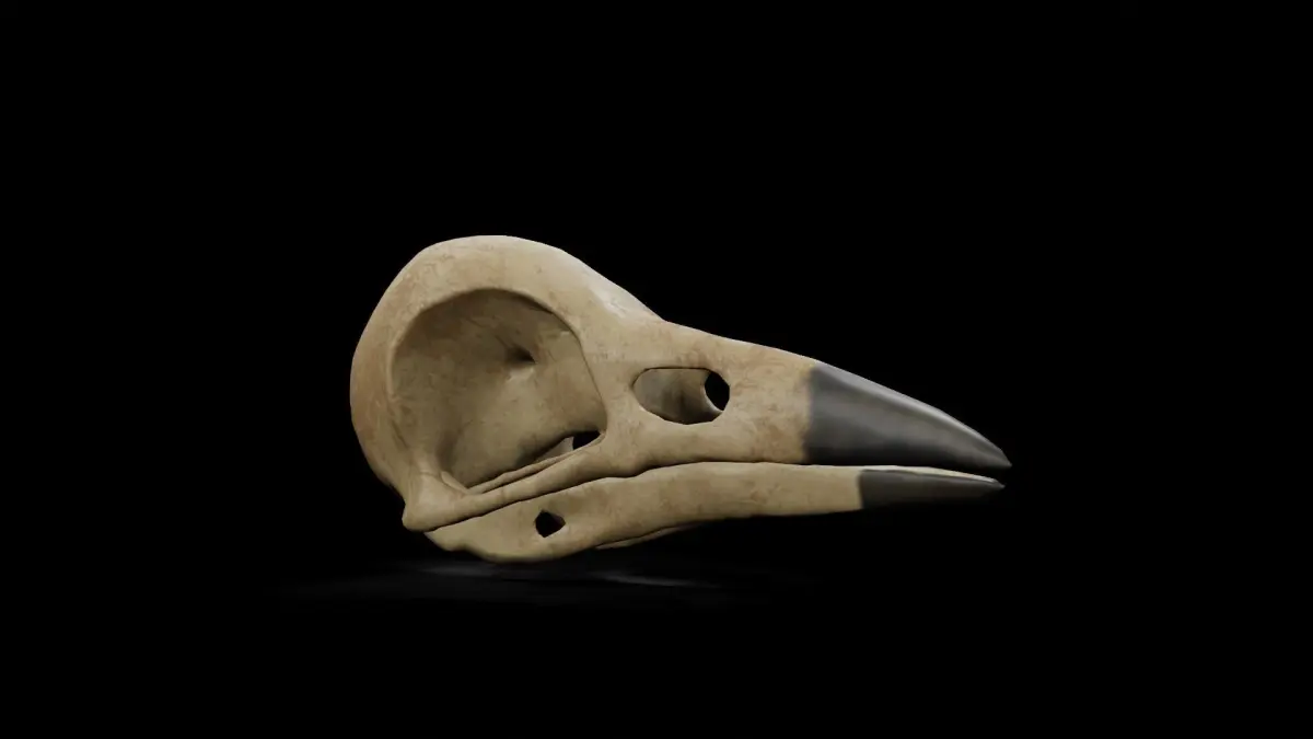 A very high quality and detailed digital sculpture of a crow Skull.