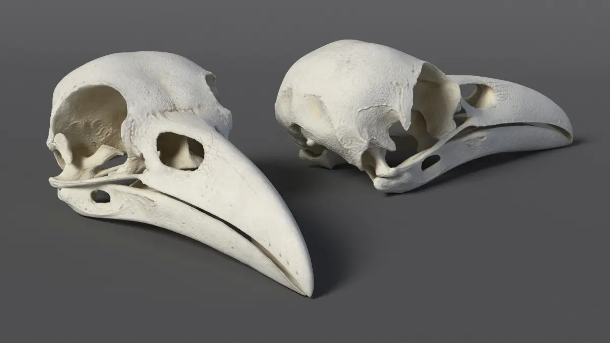 Crow Raven Skull Anatomy Model Clean is a three-dimensional model of corvid skull, representing the distinct skeletal structure of a crow or raven.