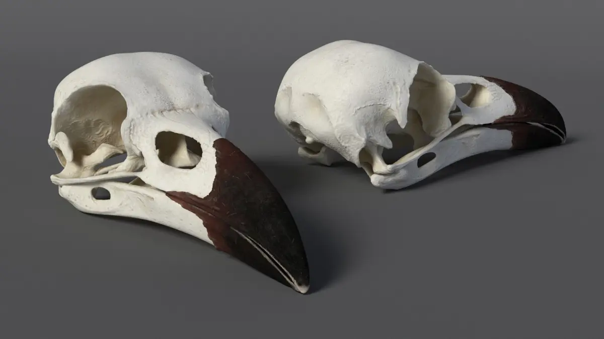 Crow Raven Skull Anatomy Model Dark Beak is a three-dimensional model of corvid skull, representing the distinct skeletal structure of a crow or raven.