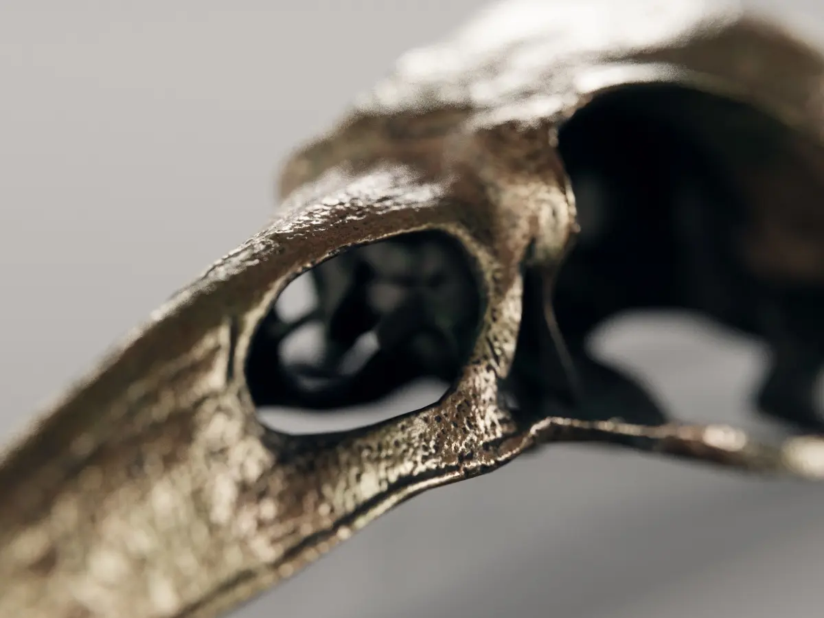 sculpted, retopologized and textured in blender. this crow skull comes with a PBR Material and has baked 4K Textures.