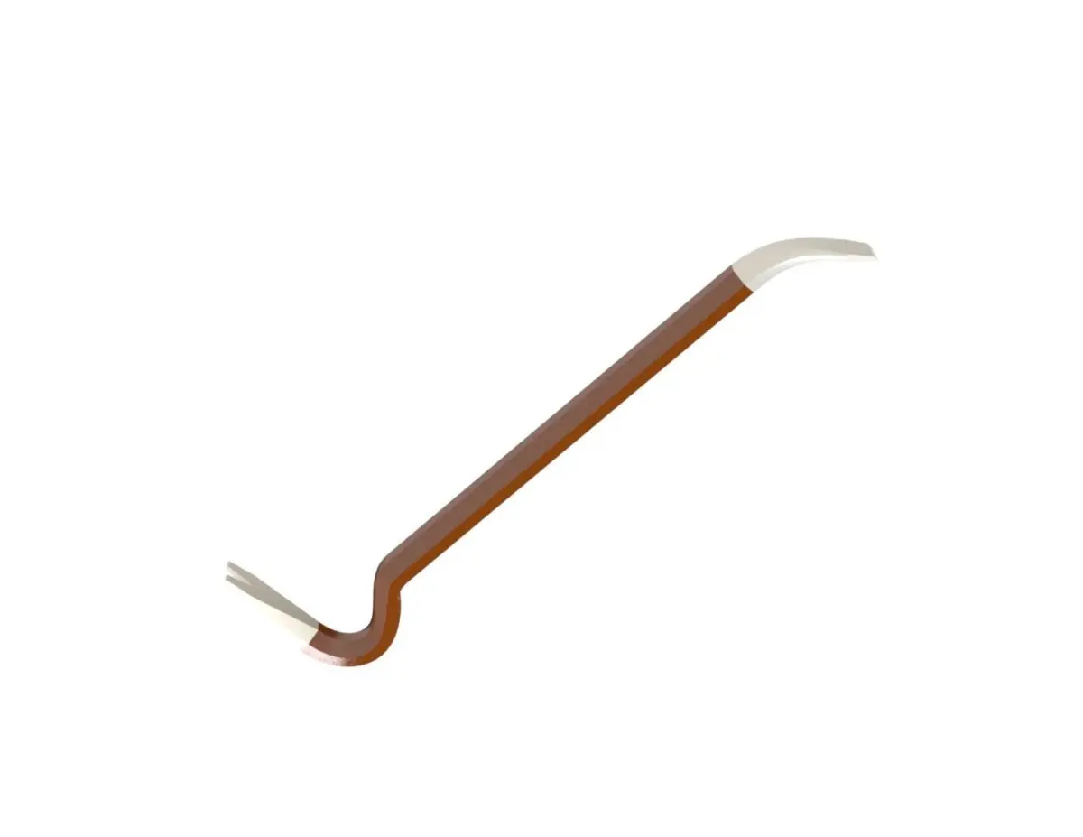The design can be used as any of the three lever classes. The curved end is usually used as a first-class lever, and the flat end as a second-class lever.