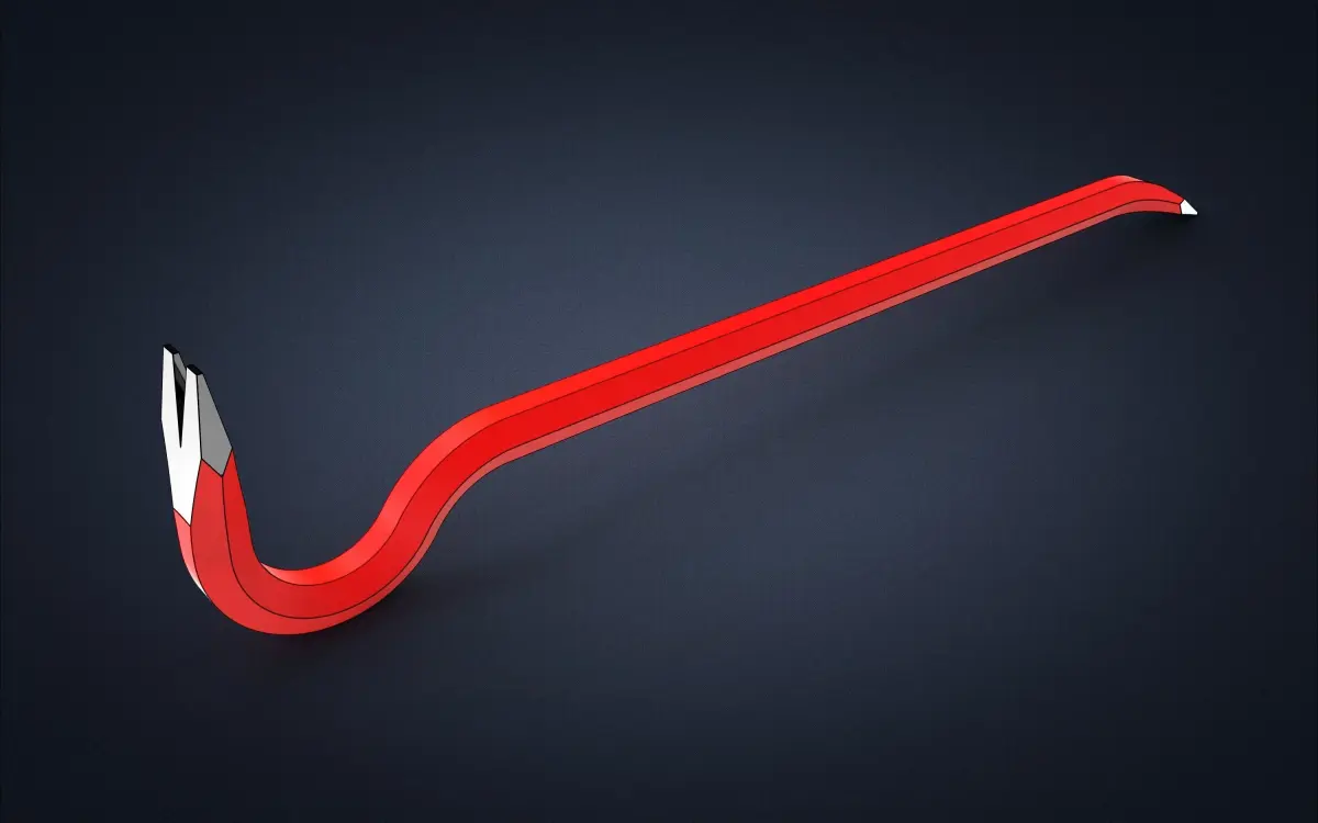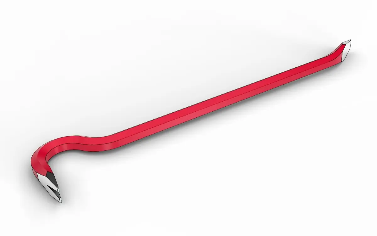 Crowbar. It's Solidworks model was exported in other CAD formats:(X_T, IGES, STEP, OBJ and STL). This 3D model can used in producing on CNC machines and for 3D printing.