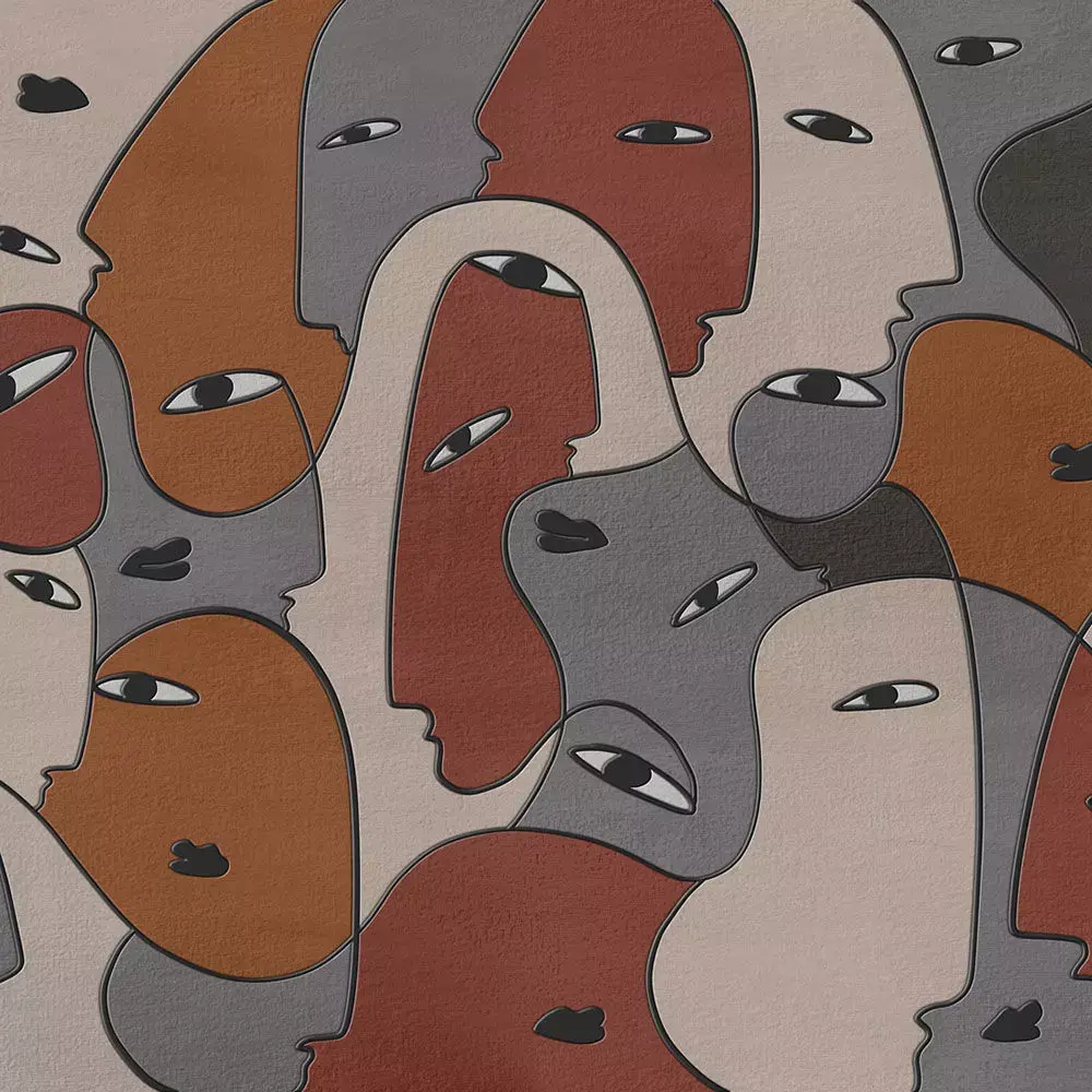 A rhythmic field of interlocking abstract faces creates a bold, gallery‑style statement that reads as art from afar and reveals playful details up close, ideal for living rooms, lounges, cafes, and boutique hotels . Matte plaster texture underpins crisp outlines and sculpted eye accents, delivering depth without glare for photography and CGI staging . The set includes curated palettes—Warm Rust & Clay, Cool Slate & Olive, and Clean Monochrome—each optimized for seamless large‑format tiling and extra‑wide feature walls . High‑resolution files maintain edge clarity through scaling, with a line‑only version provided for custom recoloring and brand integration across interior visualization workflows .