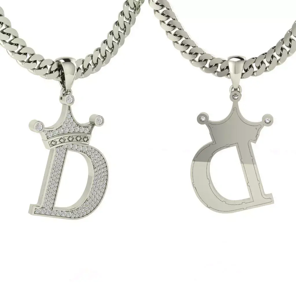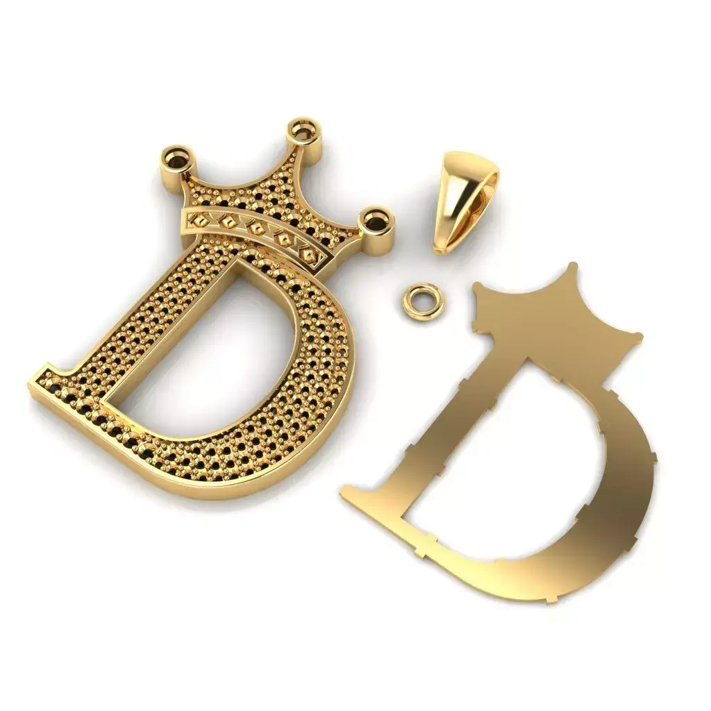 The letter D pendant with a crown on top contains diamonds