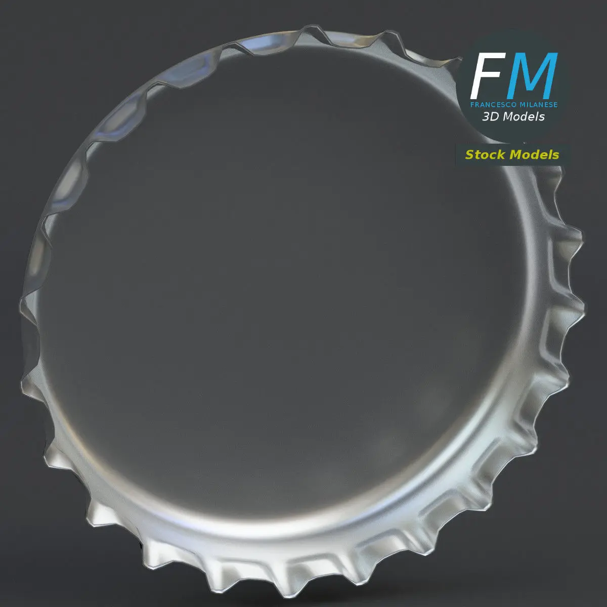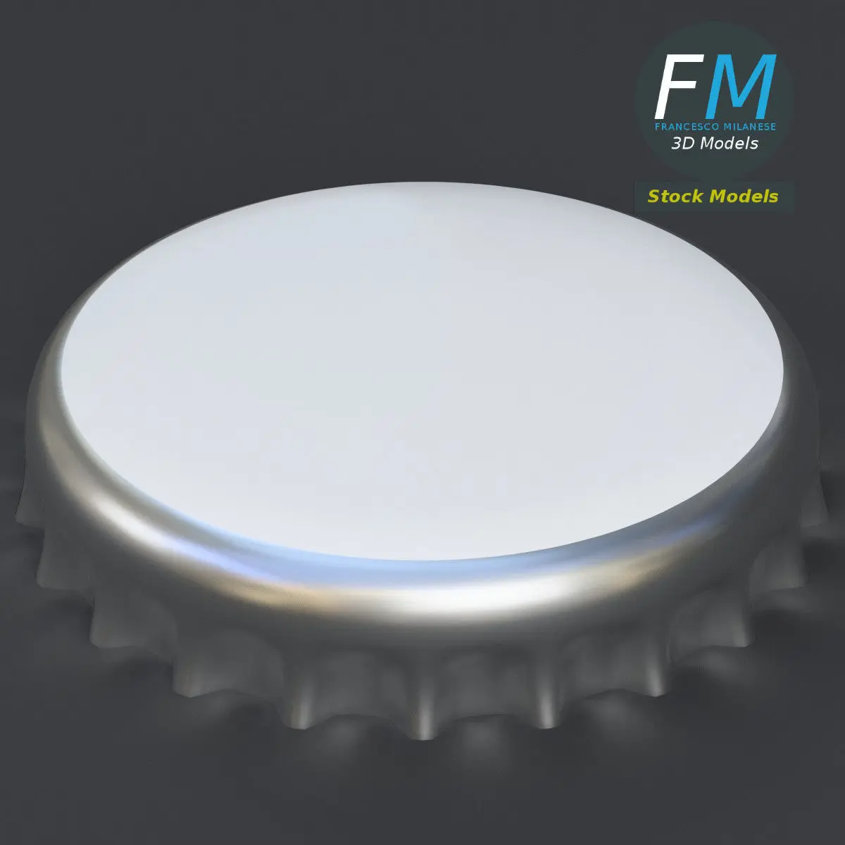 Crown cork with label 3D Model. 2 objects (cork, label --- perfect for a mock-up), each one with its own non overlapping UV Layout map, Material and PBR Textures set. Production-ready 3D Model, with PBR materials, textures, non overlapping UV Layout map provided in the package.