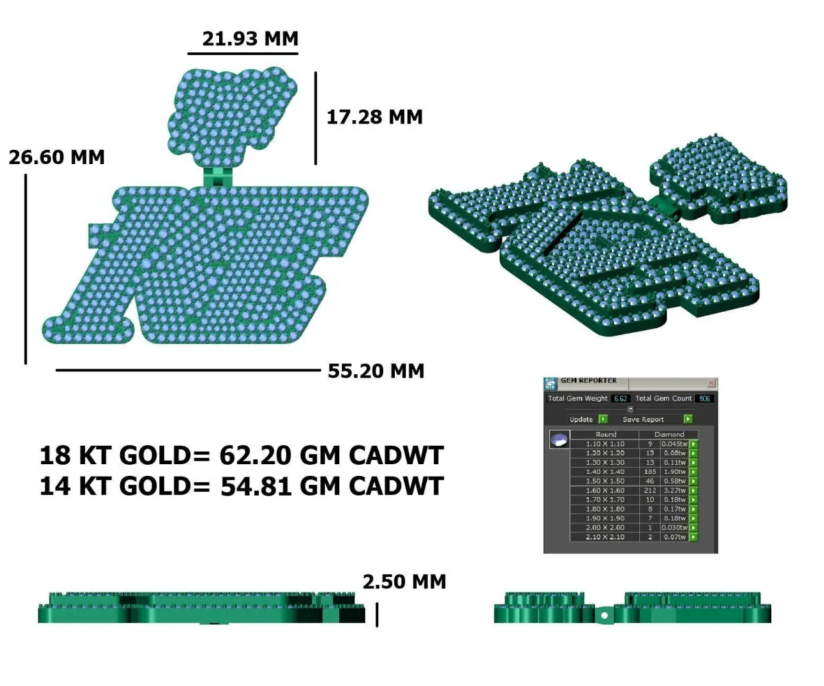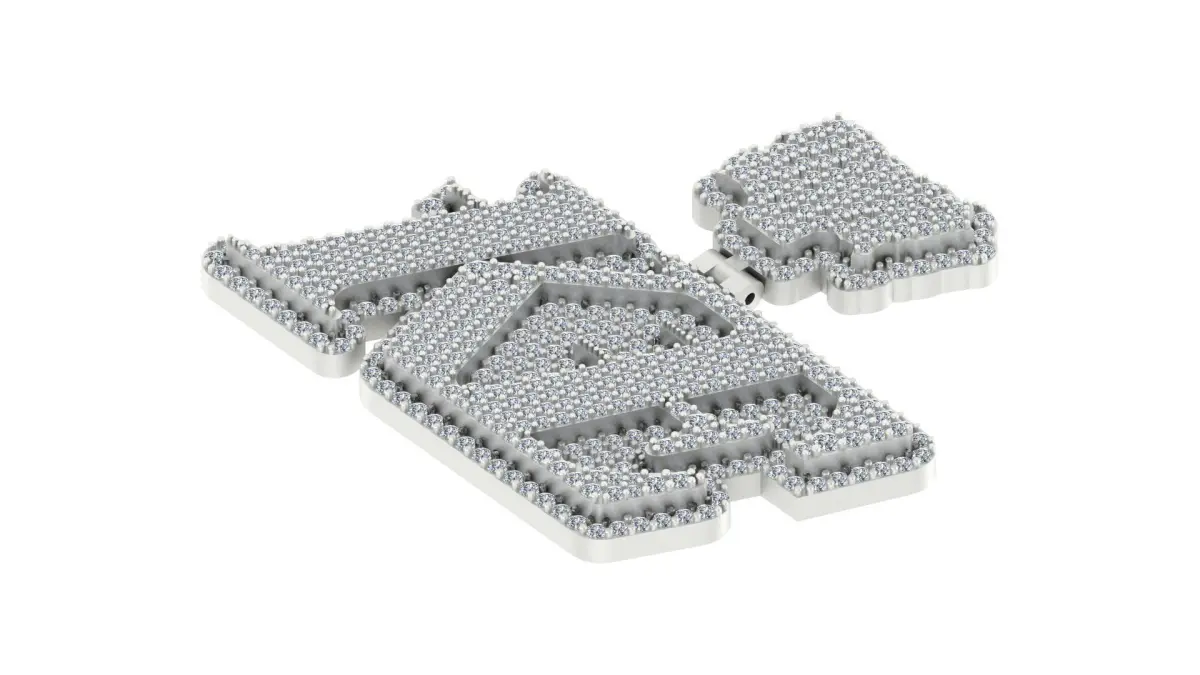 Fully iced out with precision-set round diamonds, this CAD model is designed to catch light from every angle. The crown attachment adds an elevated dimension, giving the pendant a stacked, layered appeal perfect for modern hip-hop jewelry styling.