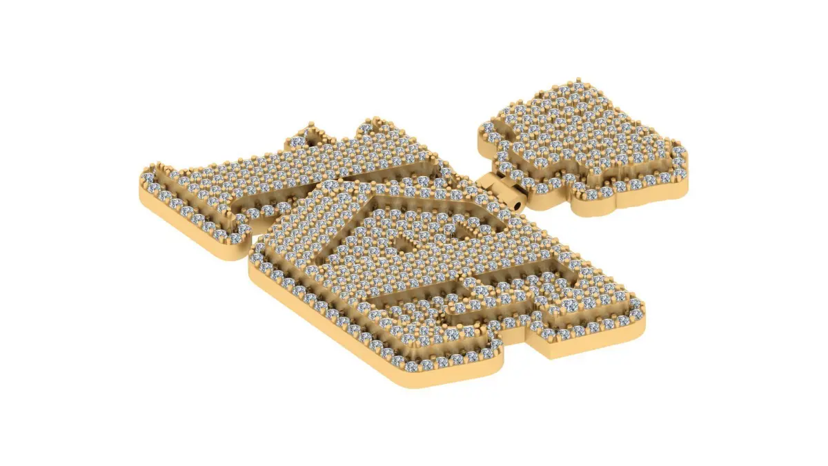 Fully iced out with precision-set round diamonds, this CAD model is designed to catch light from every angle. The crown attachment adds an elevated dimension, giving the pendant a stacked, layered appeal perfect for modern hip-hop jewelry styling.