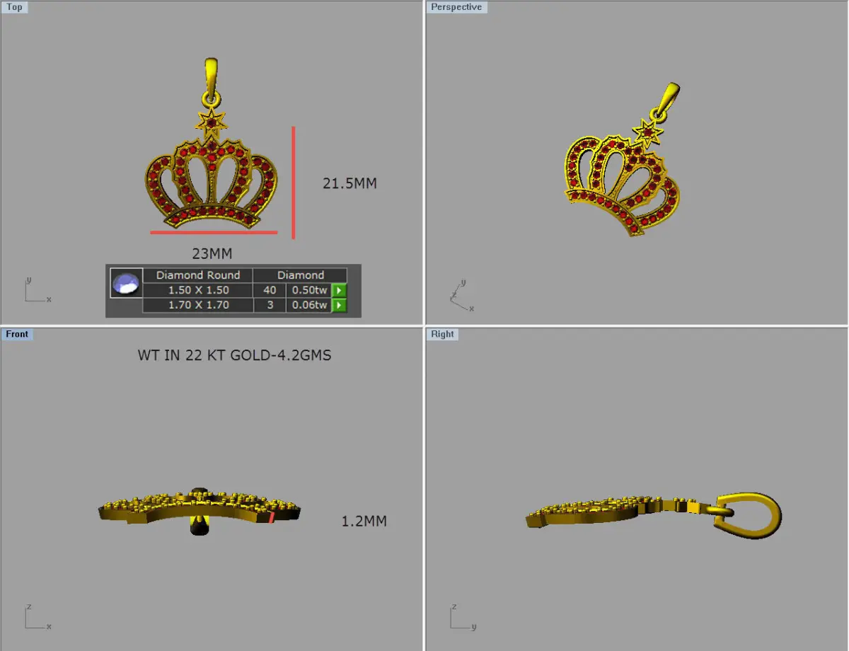 stl 3d printing file of crown star diamond necklace stl file for 3d printingall details mentioned in image pendant size and diamond details and weight