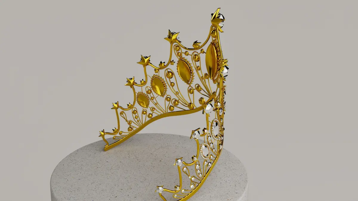 High-Poly Crown with Diamond-Studded Gold Frame Greetings art enthusiasts! I am thrilled to unveil my latest creation: The High-Poly Crown boasting a Diamond-Studded Gold Frame! This exquisite and enchanting design features a unique high-resolution poly model with a resplendent gold frame adorned with sparkling diamond gems.