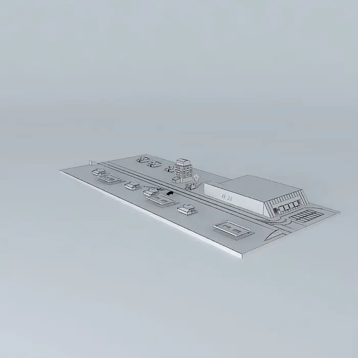 This 3D model was originally created with Sketchup 8 and then converted to all other 3D formats. Native format is .skp 3dsmax scene is 3ds Max 2016 version, rendered with Vray 3.00 Has a hotel, bank, houses, car, sav a center and parking by my great co-authors.