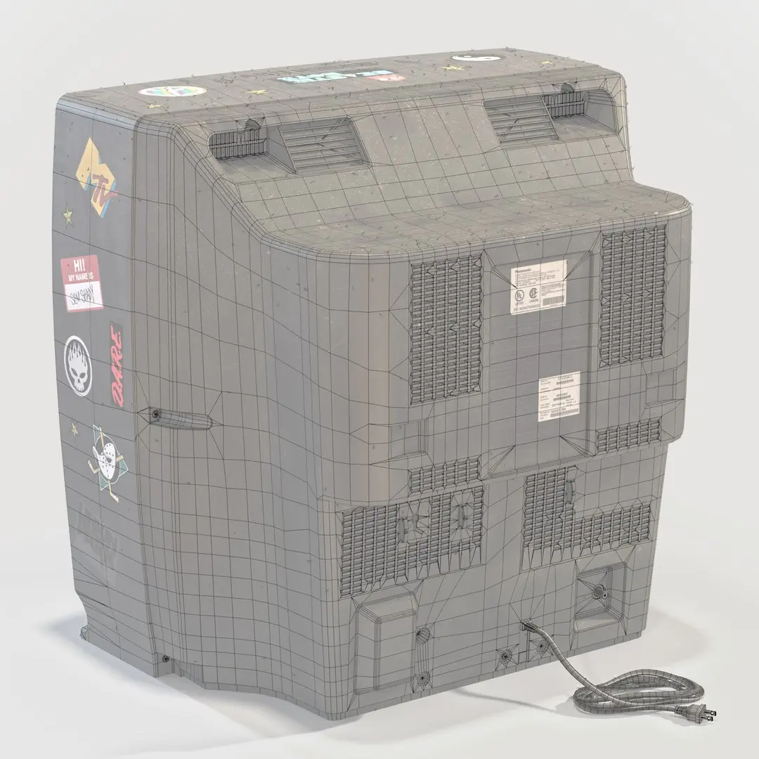 I added some Maya nHair to create some dust on the TV that is most noticeable at grazing angles. This will only be included in the Maya file.