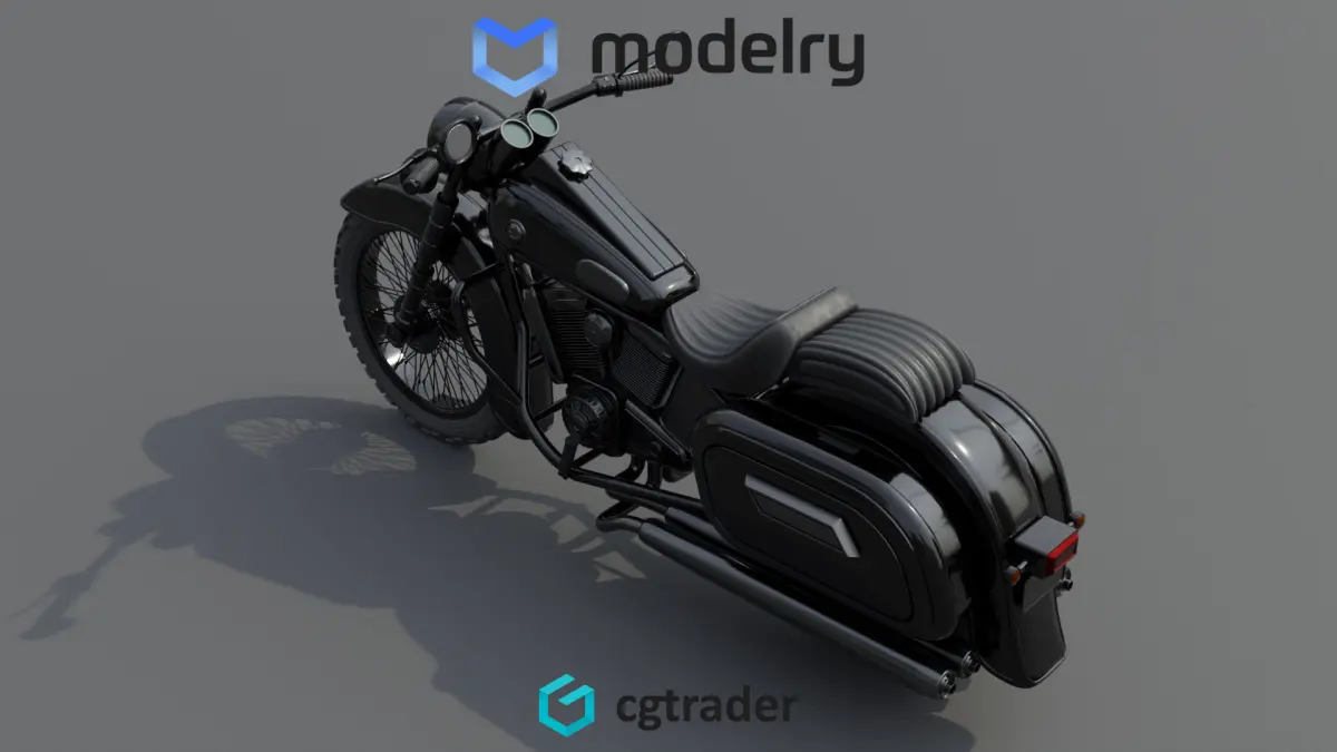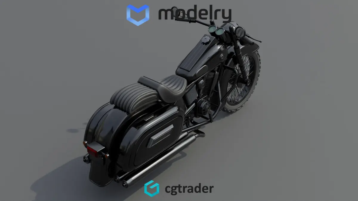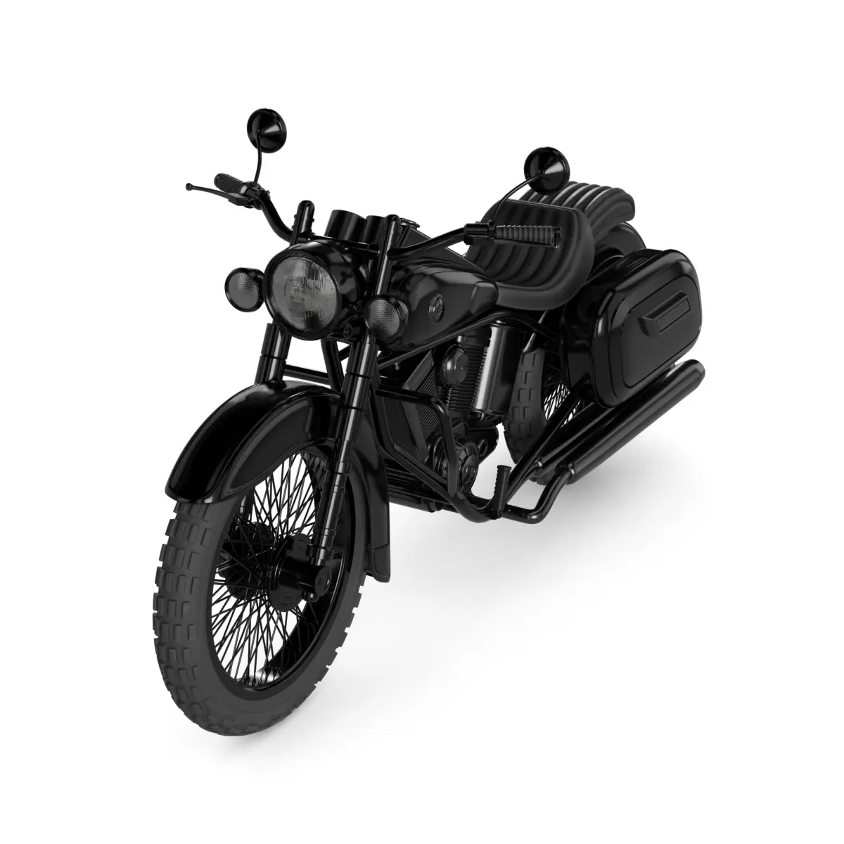 A sleek cruiser motorcycle with a glossy black finish, chrome accents, and a comfortable leather seat, designed for smooth rides on city roads in the current timeline.